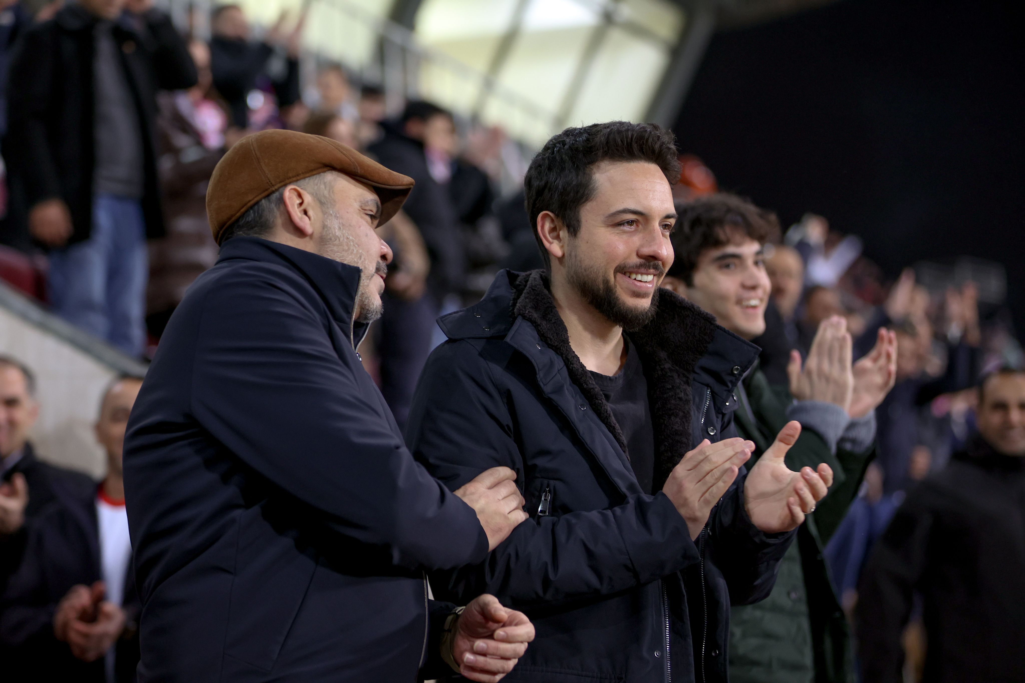 وتابع المباراة، برفقة سمو ولي العهد، سمو الأميرة سلمى بنت عبد الله الثاني، وسمو الأمير علي بن الحسين رئيس الهيئة التنفيذية للاتحاد الأردني لكرة القدم، ورئيس اتحاد غرب آسيا لكرة القدم، وعدد من أصحاب السمو الأمراء.