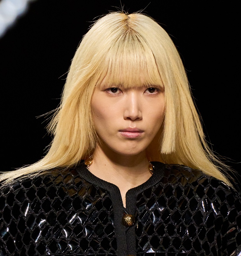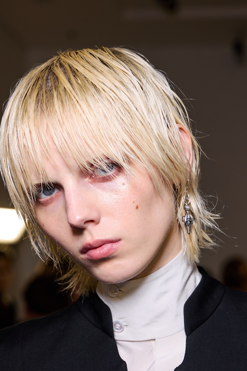 اللون الأشقر البلاتيني المائل للرمادي لا يزال يحتل الصدارة في موضة صيحات ألوان صبغات الشعر لربيع وصيف 2025. يناسب هذا اللون صاحبات البشرة الفاتحة والحنطية، وهو مثالي لإطلالة عصرية وجريئة تلائم أجواء الصيف المنعشة. يُضفي هذا اللون لمسة من الجرأة والتميز، خاصة عند تنسيقه مع تسريحات الشعر القصيرة والمبللة كما رأينا في عرض دار أونفون ريتشس ديبريميه Enfants Riches Déprimés في أسبوع الموضة الباريسي لربيع وصيف 2025.