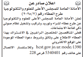 عطاء صادر عن المجلس الاعلى للعلوم والتكنولوجيا