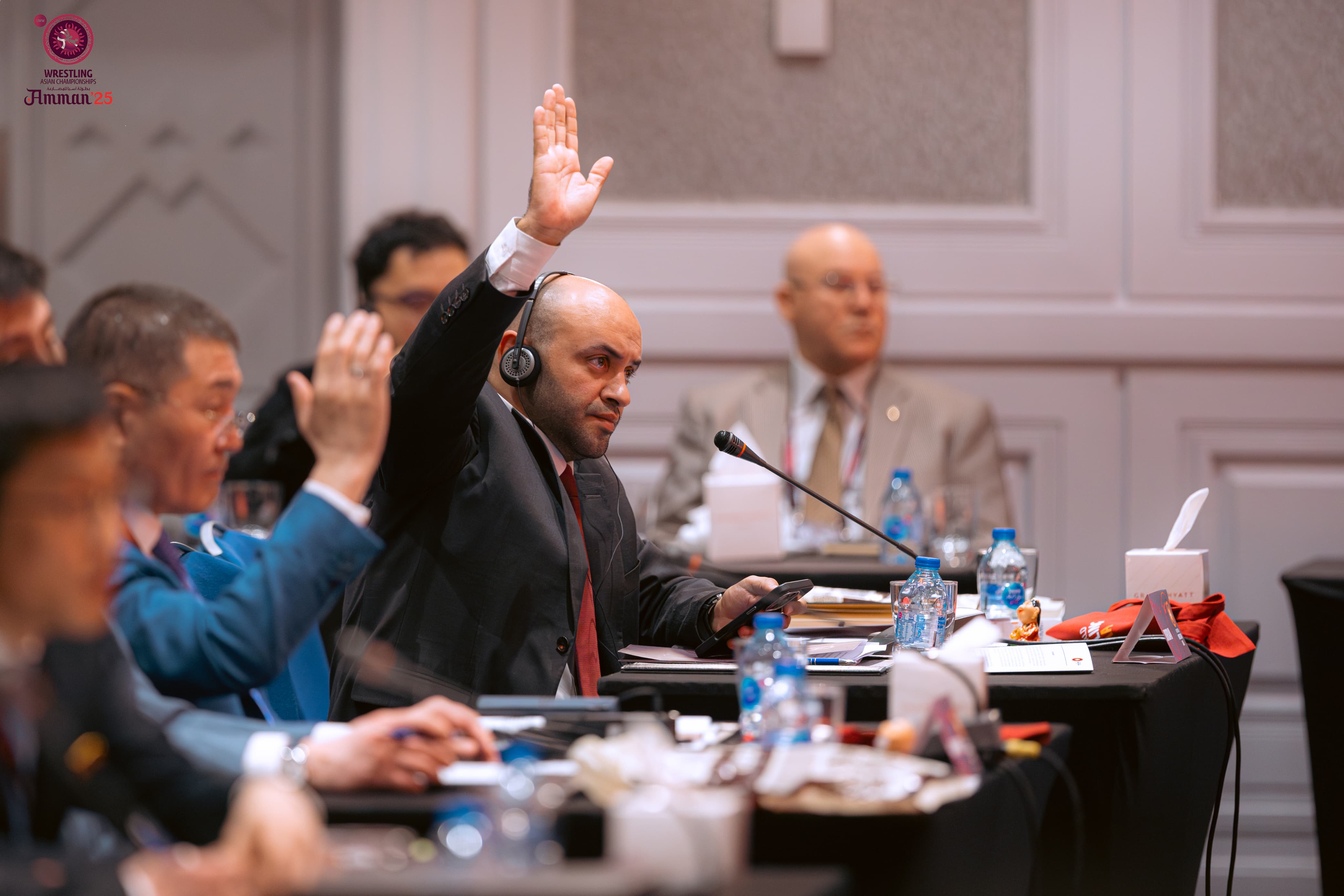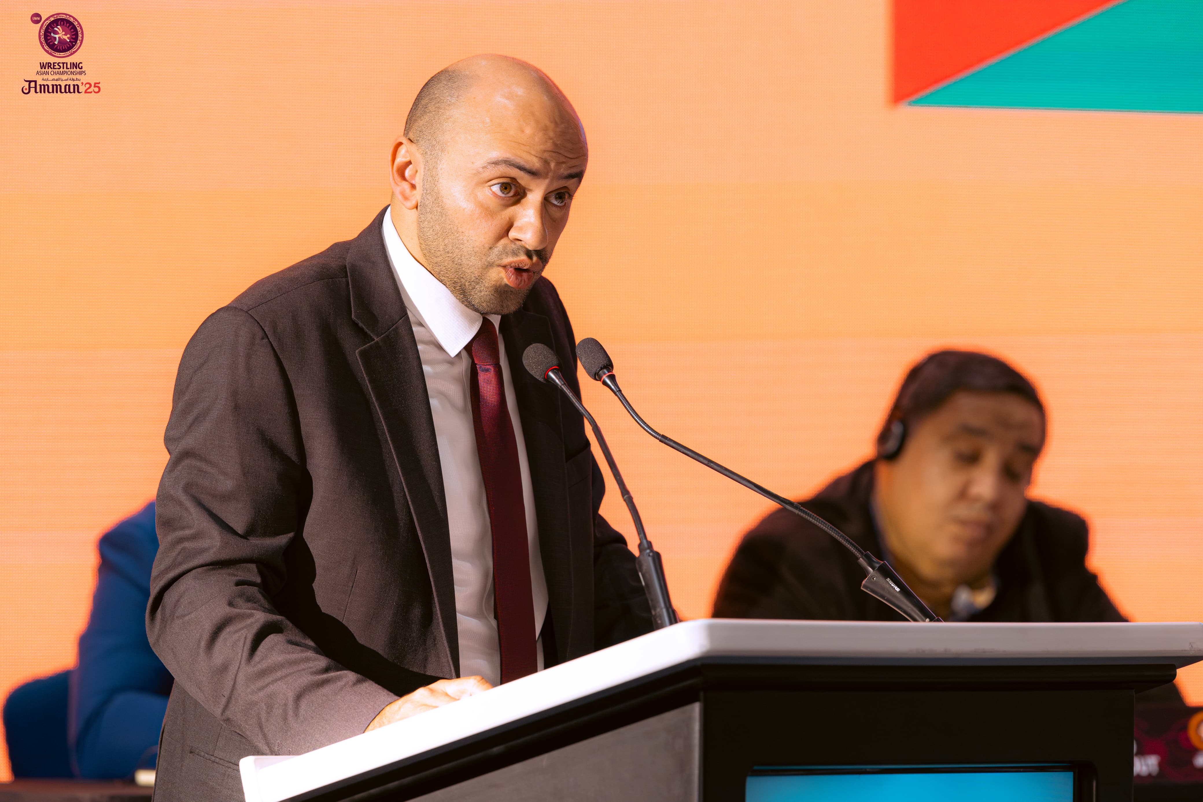 وأشار رئيس الإتحاد الآسيوي دولت ترليخانوف في كلمته على هامش انتخابات الجمعية العمومية للإتحاد الآسيوي: "بإسم المجلس الآسيوي للمصارعة يسرني الترحيب بكم في العاصمة عمان، اجتماعنا اليوم للجمعية العمومية وبطولة آسيا للكبار، نشكر من حضر لإيجاد الإمكانيات في تطوير رياضتنا وضمان مشاركة اتحاداتكم في أهم الأحداث الخاصة بالمصارعة".