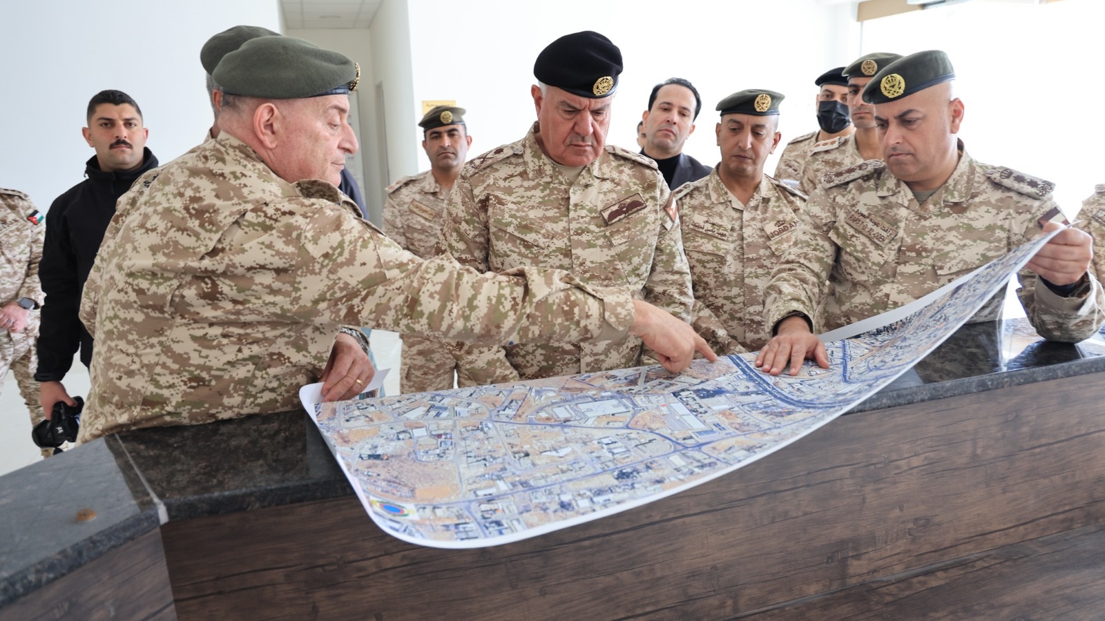 وجال اللواء الركن الحنيطي في مرافق وأقسام المركز المقام على مساحة 3680م2، واطلع على جاهزية الأقسام والعيادات، مؤكداً أهمية السرعة في إنجاز المركز والذي سيشكل إضافة نوعية للخدمات الطبية الملكية.