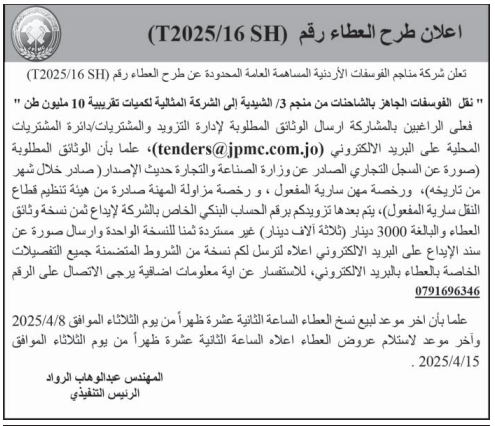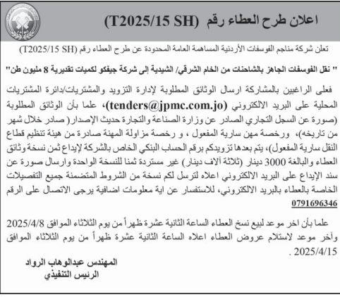 عطاءات صادرة عن شركة مناجم الفوسفات