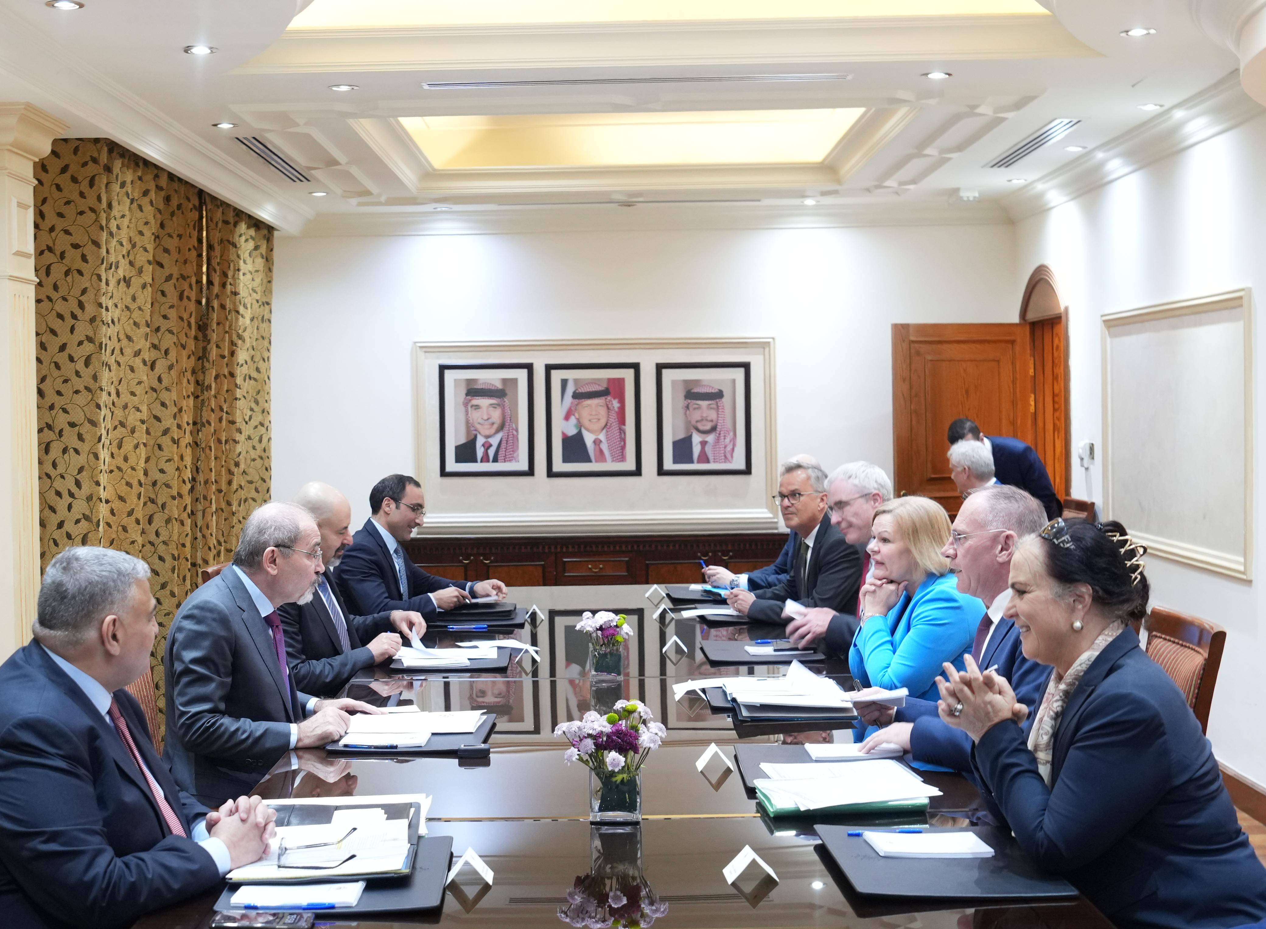 عمون - استقبل نائب رئيس الوزراء ووزير الخارجية وشؤون المغتربين أيمن الصفدي، اليوم، وزيرة الداخلية الألمانية نانسي فيزر، ووزير الداخلية النمساوي غيرهارد كارنر.