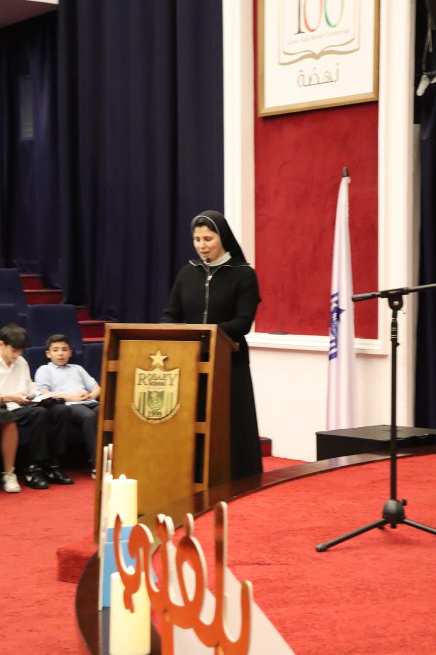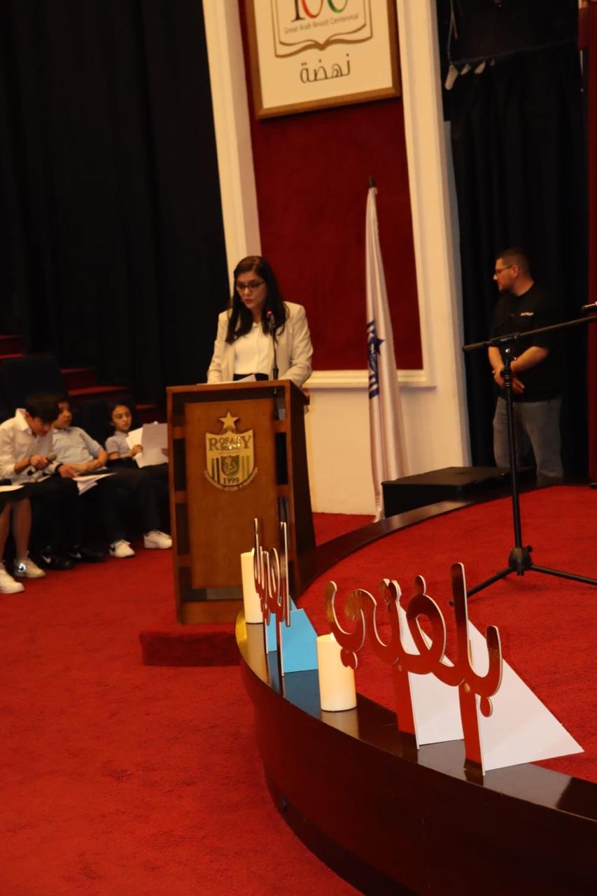 عمون - أقامت مدرسة راهبات الوردية -مرج الحمام صباح اليوم الخميس احتفالا بيوم اللغة العربية تحت رعاية الأديبة الدكتورة سارة طالب السهيل وذلك على مسرح المدرسة.