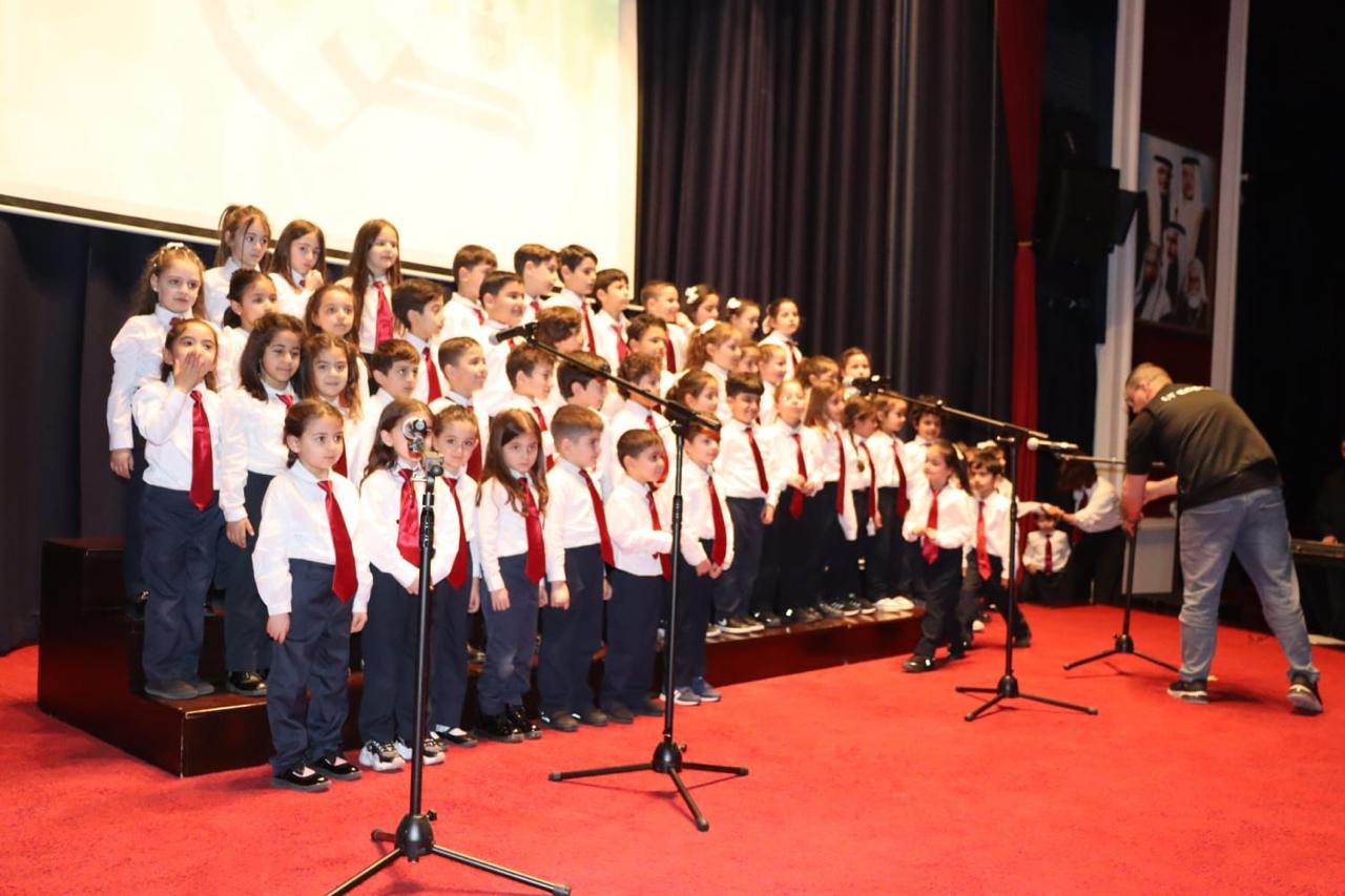 وقام الطلبة بتأدية نشيد جميل بمرافقة الفرقة الموسيقية في المدرسة .