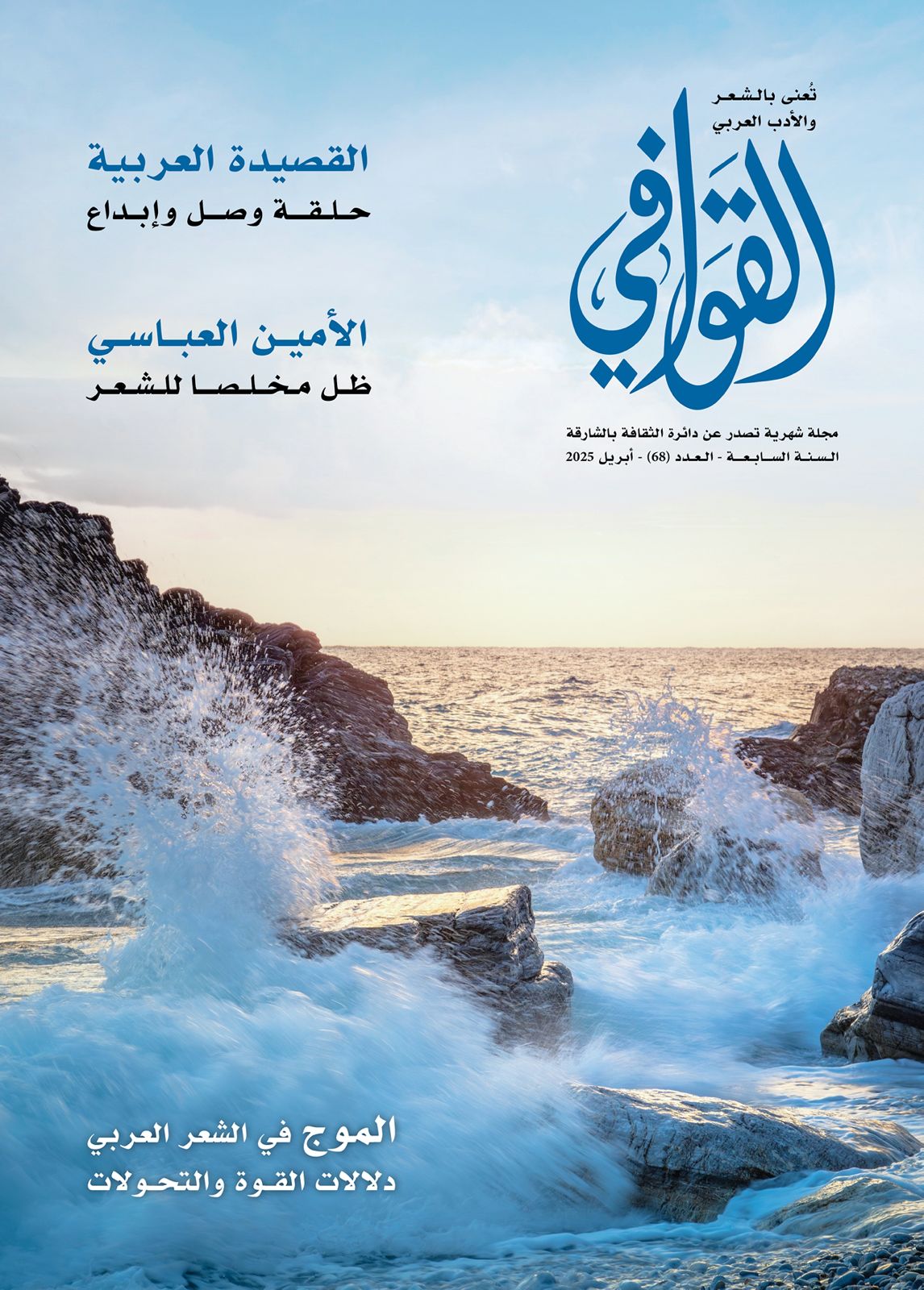 عمون - صدر عن "بيت الشعر" في دائرة الثقافة بالشارقة العدد 68 لشهر أبريل من مجلة "القوافي" الشهرية؛ المتخصّصة بالشعر الفصيح ونقده - في عامها السابع- التي تحتفي بالمواضيع ذات الصلة به بلاغةً ولغةً وتراثًا. كما تحتفي بالشعراء من مختلف العصور.