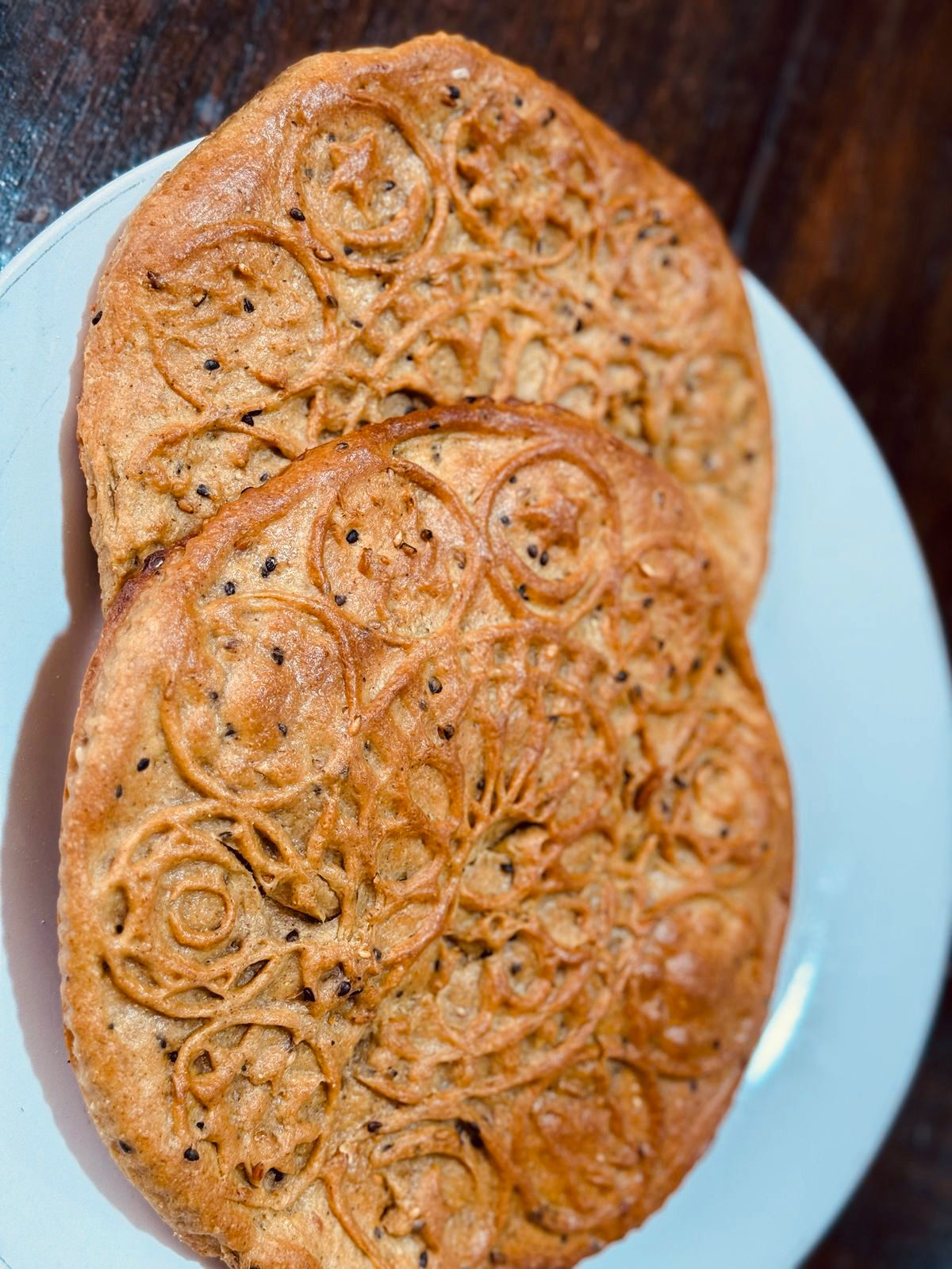 عجنتُ الدقيق بمطيبات الكعك الأصيلة وأضفت إليه زيت الزيتون الذي يسكن مطبخي ليحمل عطر التربة الاربدية الحمراء …ورششتُ الحبة السوداء والسمسم كمن ينثر ذكريات العيد على عجين الانتظار.