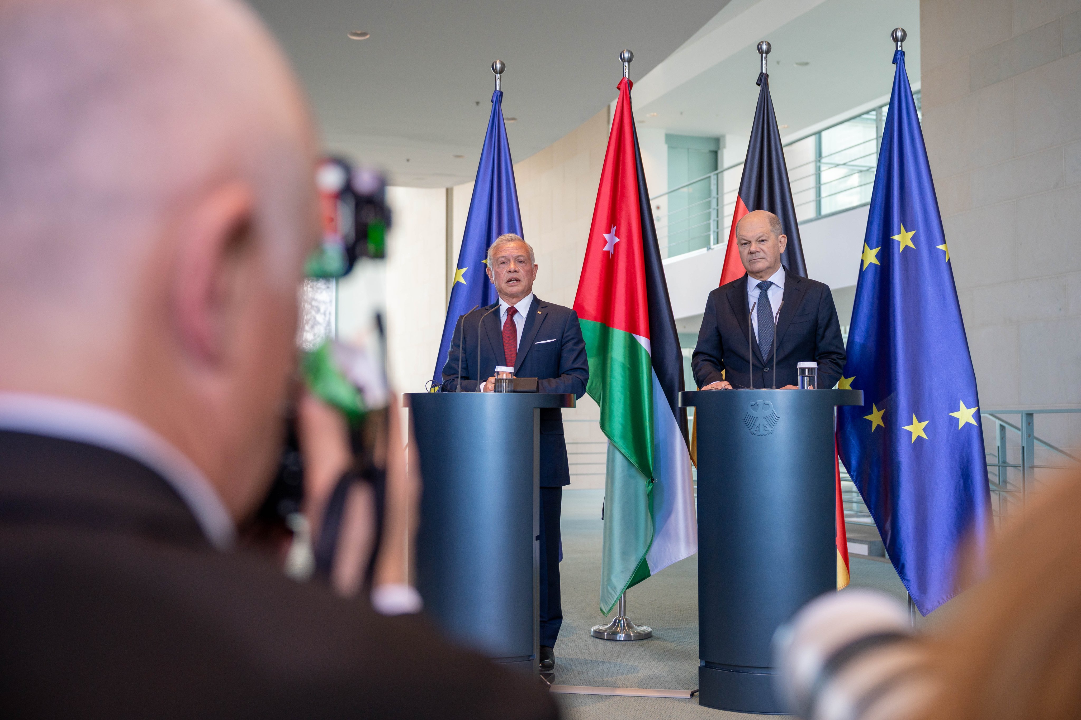 وشكر جلالة الملك المستشار شولتس، الذي يشارف على إنهاء خدمته، على صداقته مع الأردن وجهوده لتعزيز السلام والاستقرار في الشرق الأوسط.