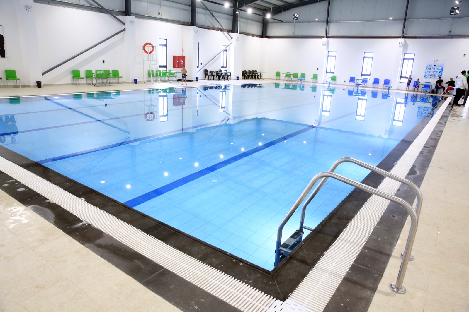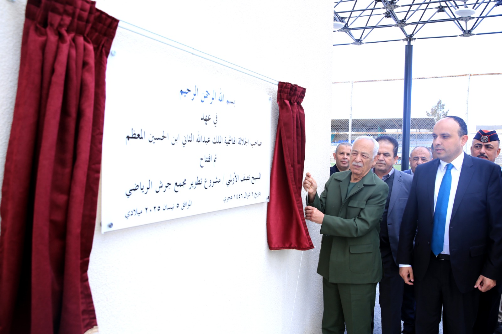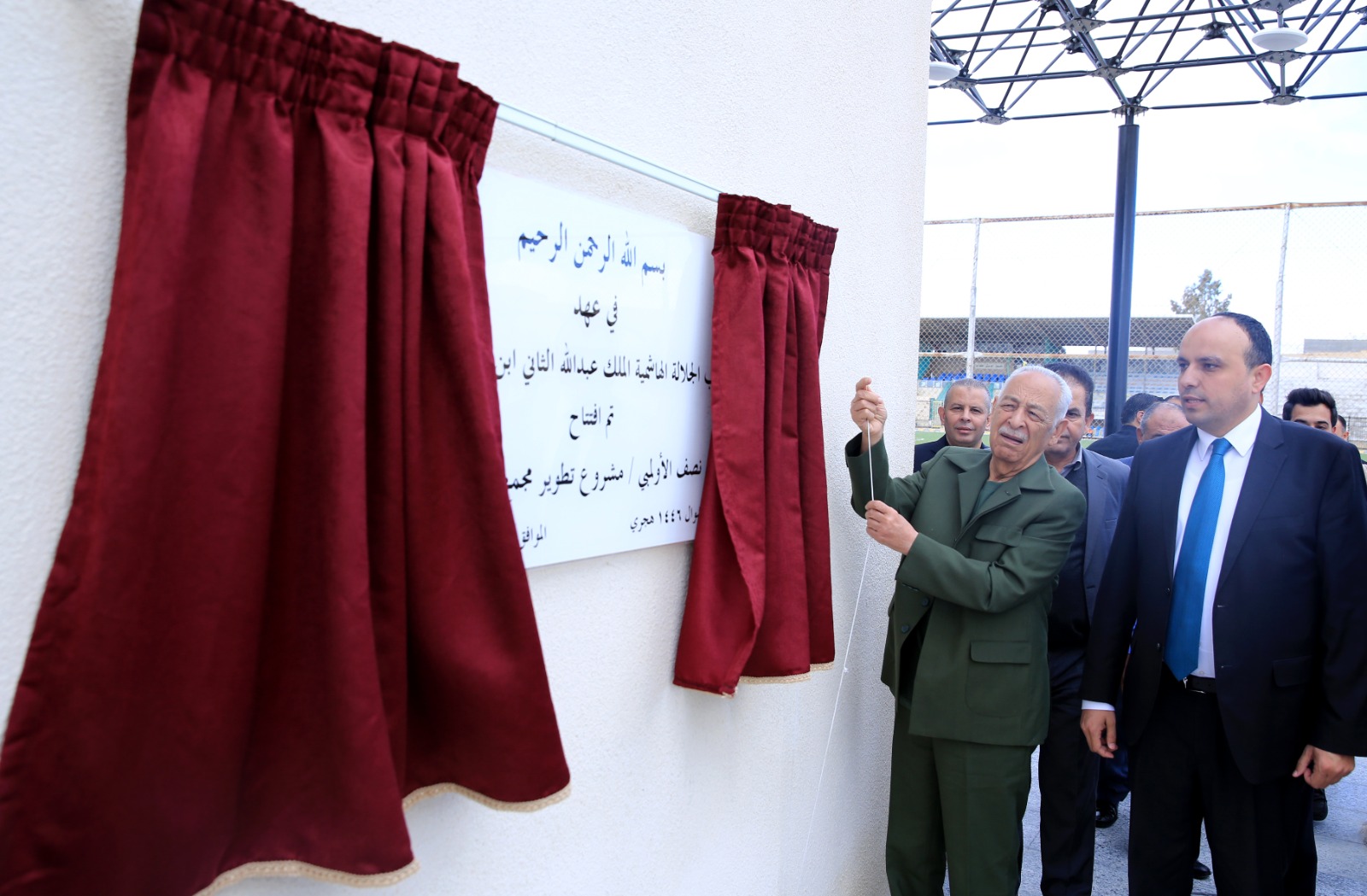 عمون - افتتح رئيس الديوان الملكي الهاشمي، يوسف حسن العيسوي، رئيس لجنة متابعة تنفيذ مبادرات جلالة الملك، اليوم السبت، المسبح النصف الأولمبي المغلق، ضمن المرحلة الأولى لتطوير مجمع جرش الرياضي، الذي وجه جلالة الملك عبدالله الثاني بإعادة تأهيله وتطويره ليكون نواة لمدينة رياضية متكاملة.