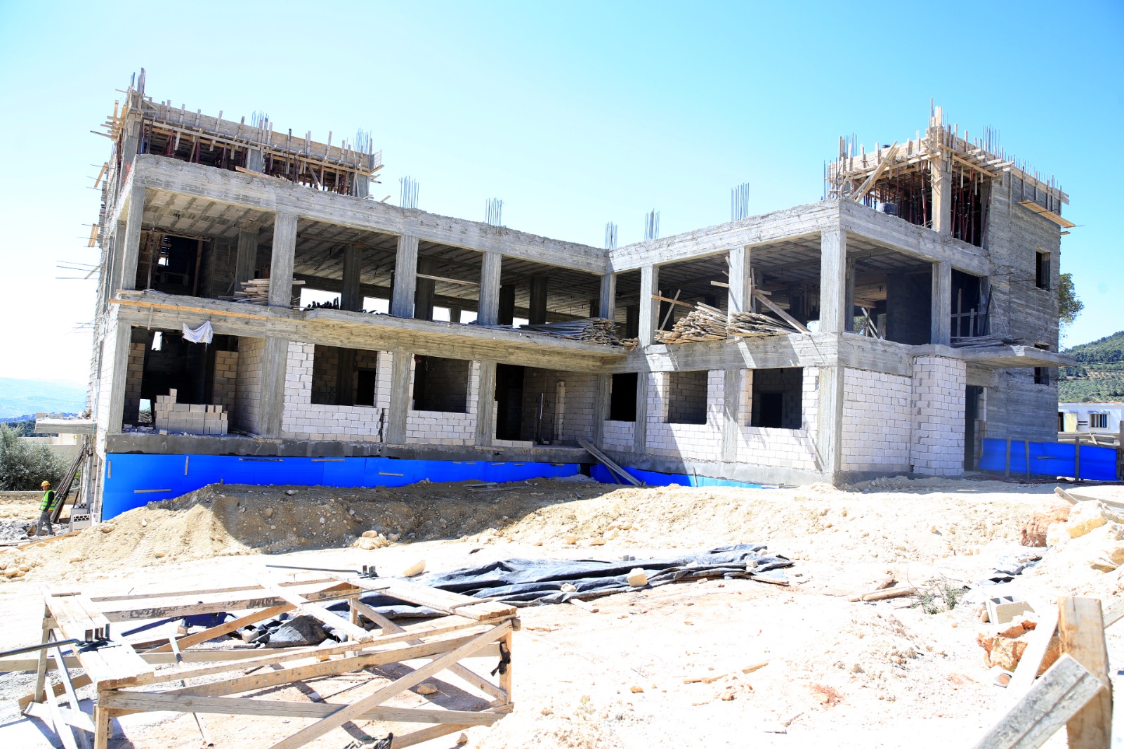 وخلال الجولة التفقدية في المشروع، الذي بلغت نسبة الإنجاز فيه (35%)، استمع العيسوي إلى شرح من القائمين عليه حول تقدم سير العمل، حيث وجه بضرورة الإسراع في التنفيذ وتكثيف العمل لتكون المدرسة جاهزة لاستقبال الطلبة مع بداية العام الدراسي القادم.