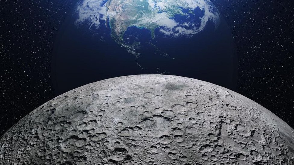 سطح القمر مليء بالفوهات التي اصطدمت بها الكويكبات والمذنبات في الماضي.
