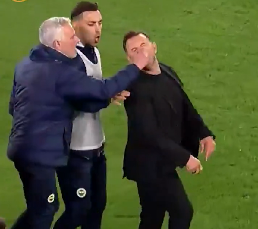 وفي لقطات نشرت على وسائل التواصل الاجتماعي بشكل واسع، ظهر مورينيو وهو يمد يده تجاه منافسه ويلمس أنفه. ثم سقط بوراك على الأرض وهو ممسكا بوجهه قبل أن يتم إبعاد مورينيو.