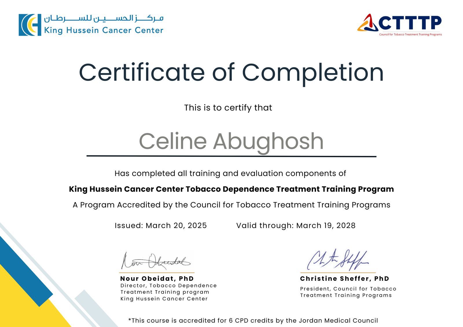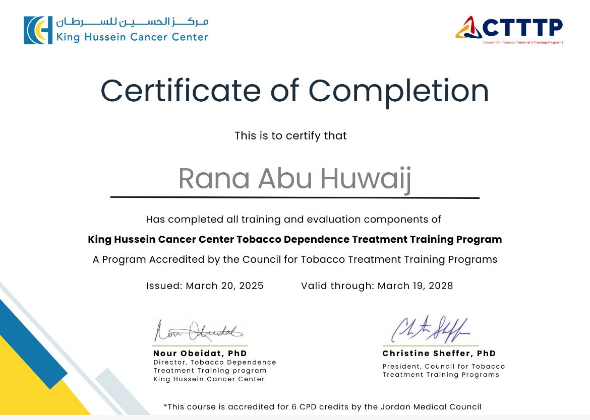 عمون - في إطار التزامها التام بتطبيق استراتيجيات مكافحة التدخين وبتوصيات صادرة عن مجلس التعليم العالي، وحرصاً على تقديم أفضل الخدمات الصحية لطلبتها ومنتسبيها، حصلت جامعة عمان العربية على شهادة "أخصائي علاج الإدمان على التبغ" التي تمنحها الولايات المتحدة الأمريكية ومركز الحسين للسرطان، حيث حصلت الأستاذ الدكتورة رنا أبو حويج عميد كلية الصيدلة ورئيس لجنة الإقلاع عن التدخين في الجامعة، والدكتورة الصيدلانية سيلين أبوغوش على الشهادة بعد اجتيازهما دورة تدريبية مكثفة استمرت لمدة خمسة أيام، خلال الفترة ما بين 16 إلى 20 شباط، في مجال علاج الإدمان على التبغ، حيث أن هذا البرنامج التدريبي الأول من نوعه خارج الولايات المتحدة الذي يحصل على هذا الاعتماد، حيث يُمنح المتدربون شهادة معتمدة من الطرفين عند إكمال متطلباته.