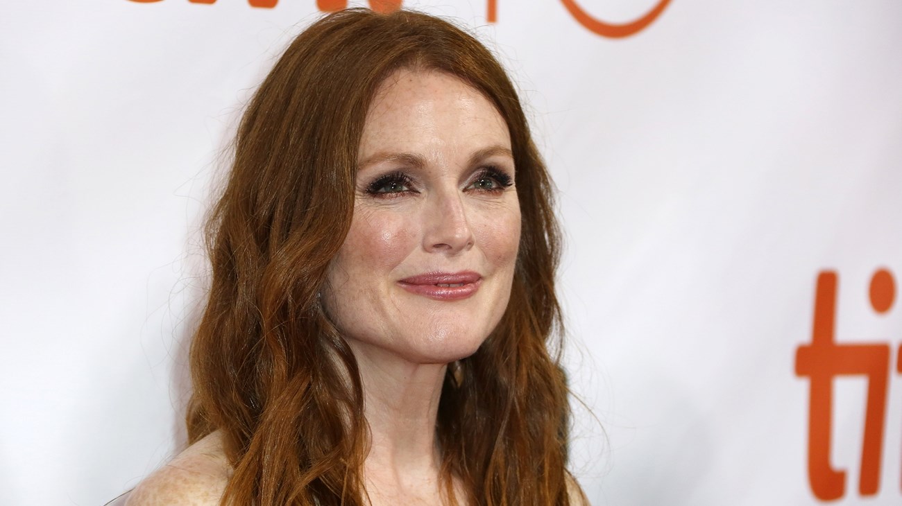 الممثلة الشهيرة بوجود النمش على بشرتها، جوليان مور، تختار من الألوان: الذهبي والعاجي، والكموني، والأصفر، والأحمر البرتقالي، وارتداء الذهب أيضاً يناسب درجات البشرة الدافئة أكثر من الفضة.