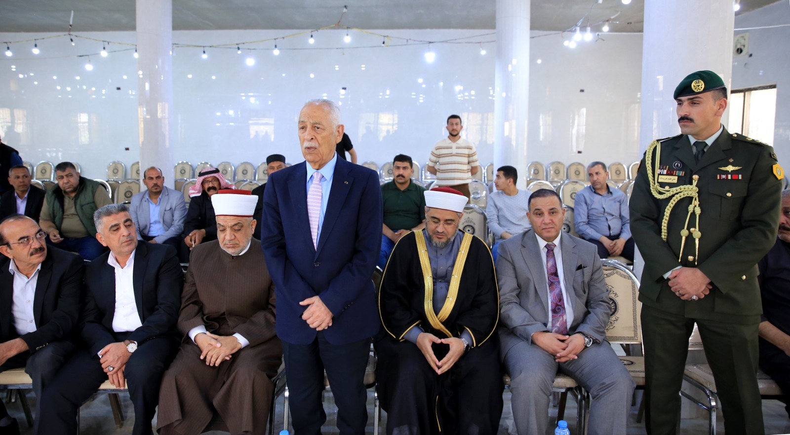 عمون - مندوبا عن جلالة الملك عبدالله الثاني، وسمو الأمير الحسين بن عبدالله الثاني، ولي العهد، قدم رئيس الديوان الملكي الهاشمي يوسف حسن العيسوي، اليوم الاثنين، واجب العزاء إلى عشيرة الخلايلة، بوفاة المرحوم راجي أحمد الخلايلة. |