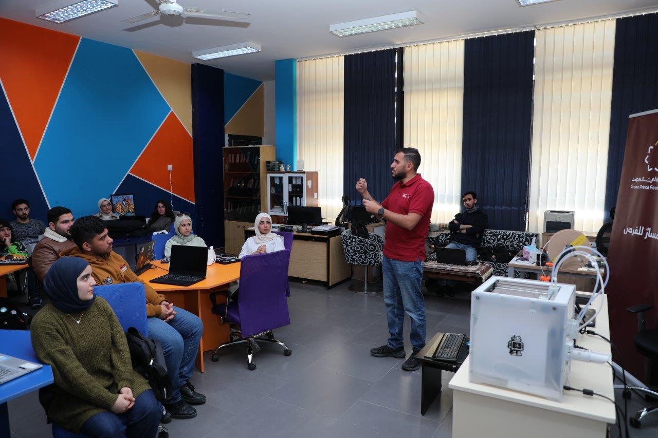 عمون - نظّم مركز الإبداع والابتكار وريادة الأعمال في جامعة عمان العربية، وبالتعاون مع مؤسسة ولي العهد / مساحة الصناع، ورشة تدريبية متخصصة في مجال الطباعة ثلاثية الأبعاد وذلك على مدار يومين، وبمشاركة عدد من طلبة الجامعة من مختلف التخصصات.