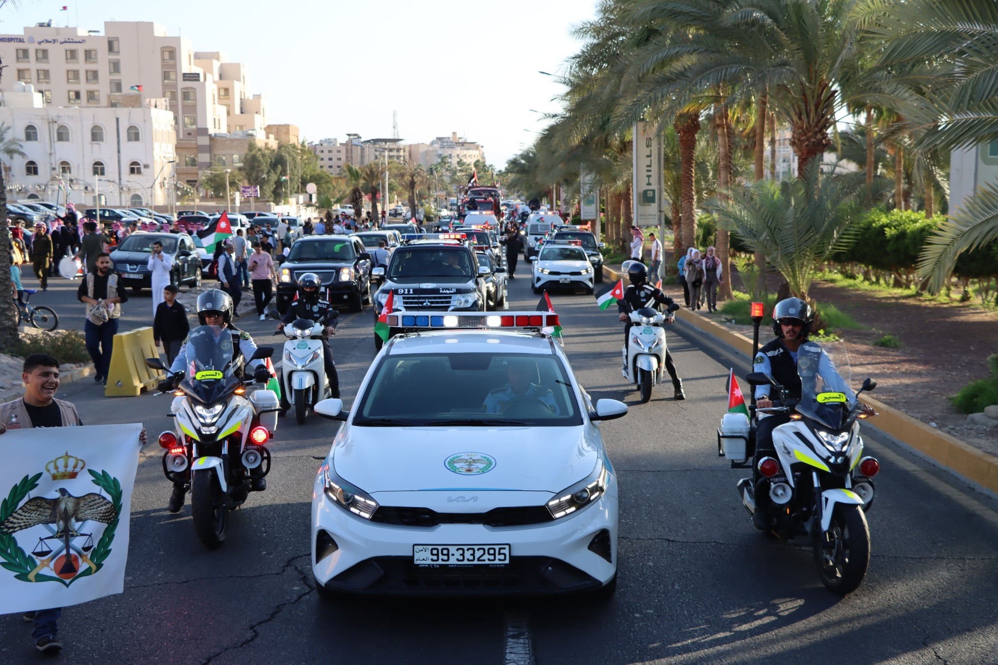 كما انطلق في ذات التوقيت في محافظة العقبة، استعراضاً لفرسان وهجانة وموسيقات الأمن العام، وآليات مختلفة من تشكيلات المديرية، وذلك من دوار الشريف الحسين بن علي باتجاه متحف الأمن العام في المنطقة السابعة.