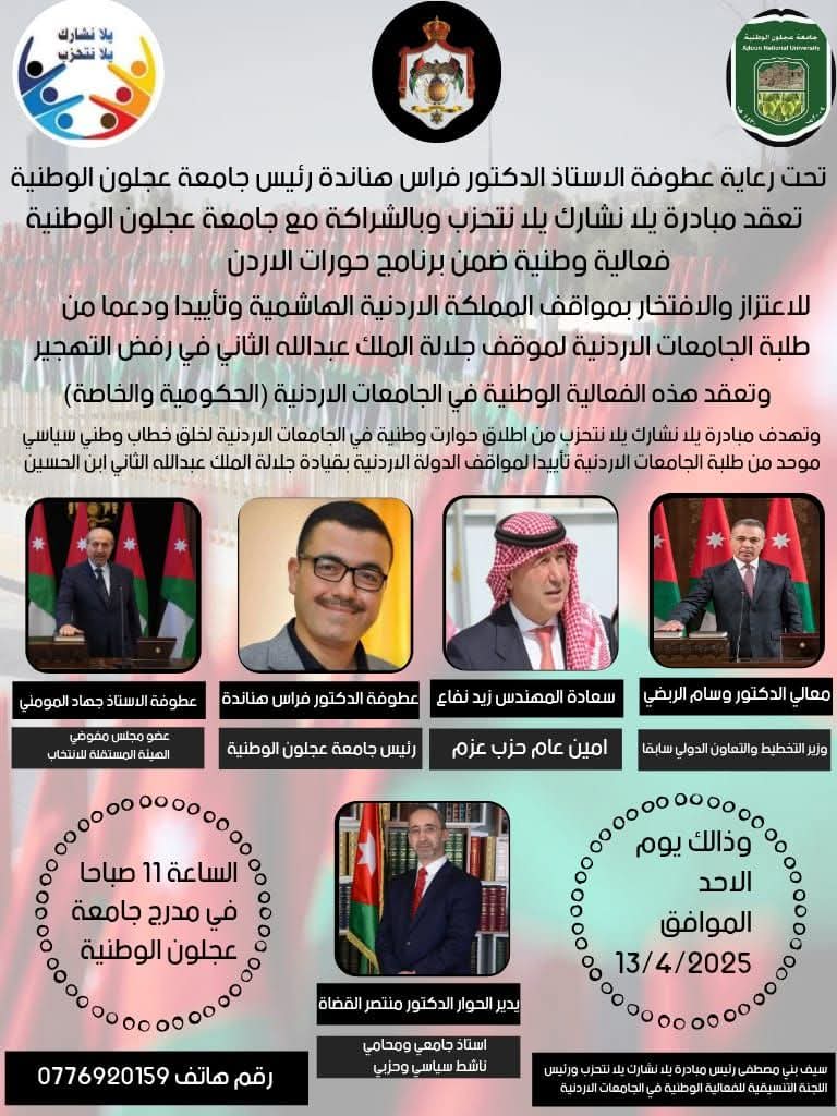 تتشرف جامعة عجلون الوطنية بدعوتكم لحضور الفعالية الوطنية