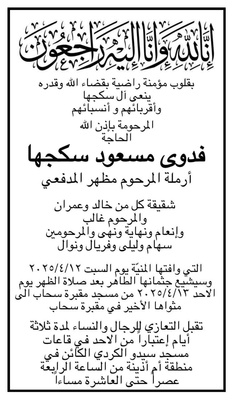 خالة الزميل باسم سكجها في ذمة الله12-04-2025 09:43 PM