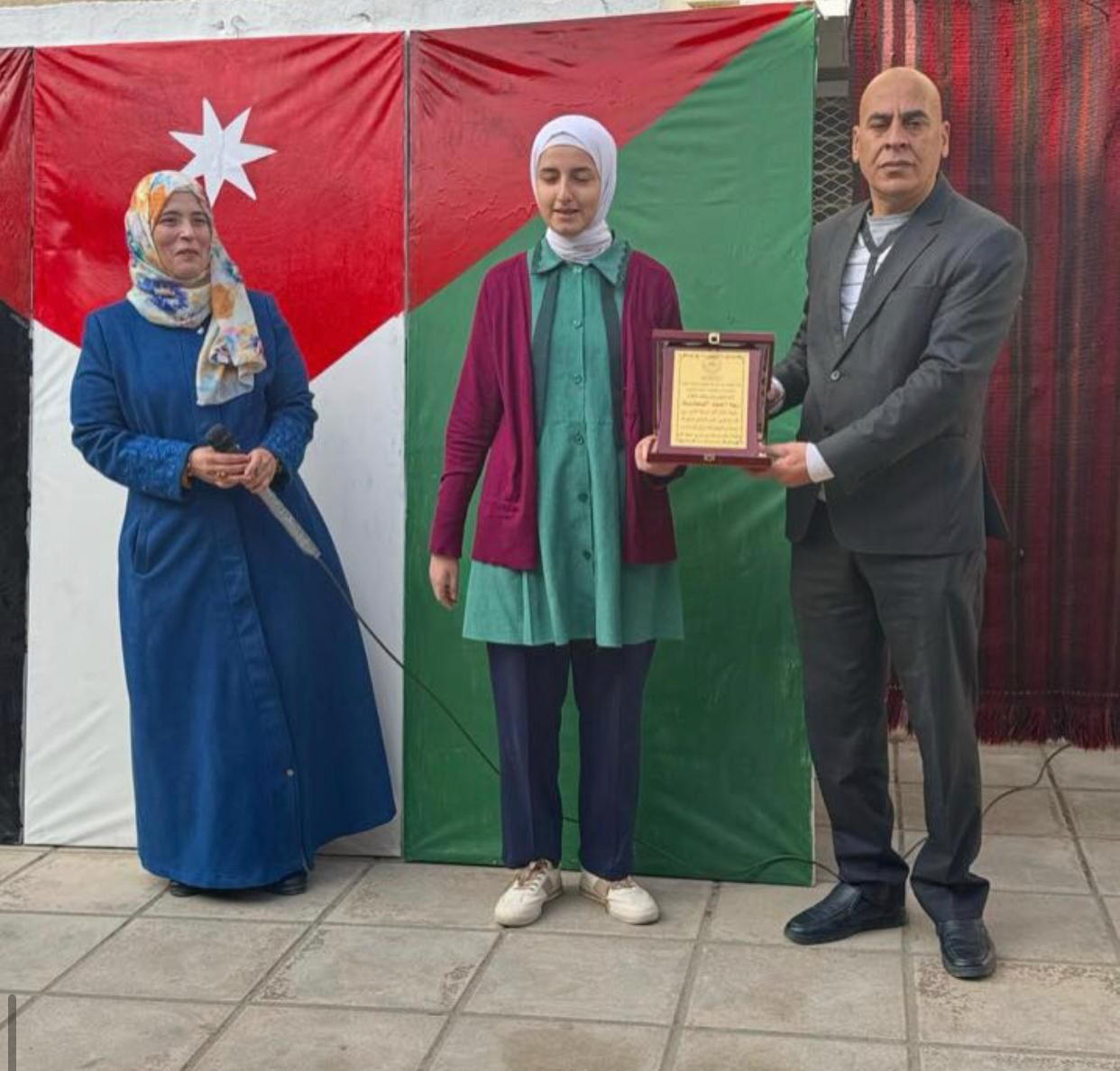 عمون - كرم مدير التربية والتعليم لمنطقة الطفيلة الأستاذ عمران اللصاصمة، يرافقه رئيس قسم الإعلام الأستاذ إبراهيم الزرقان، صباح اليوم الأحد الموافق الثالث عشر من نيسان لعام 2025، الطالبة ريما أحمد المحاسنة في مدرسة زين الشرف الثانوية للبنات.