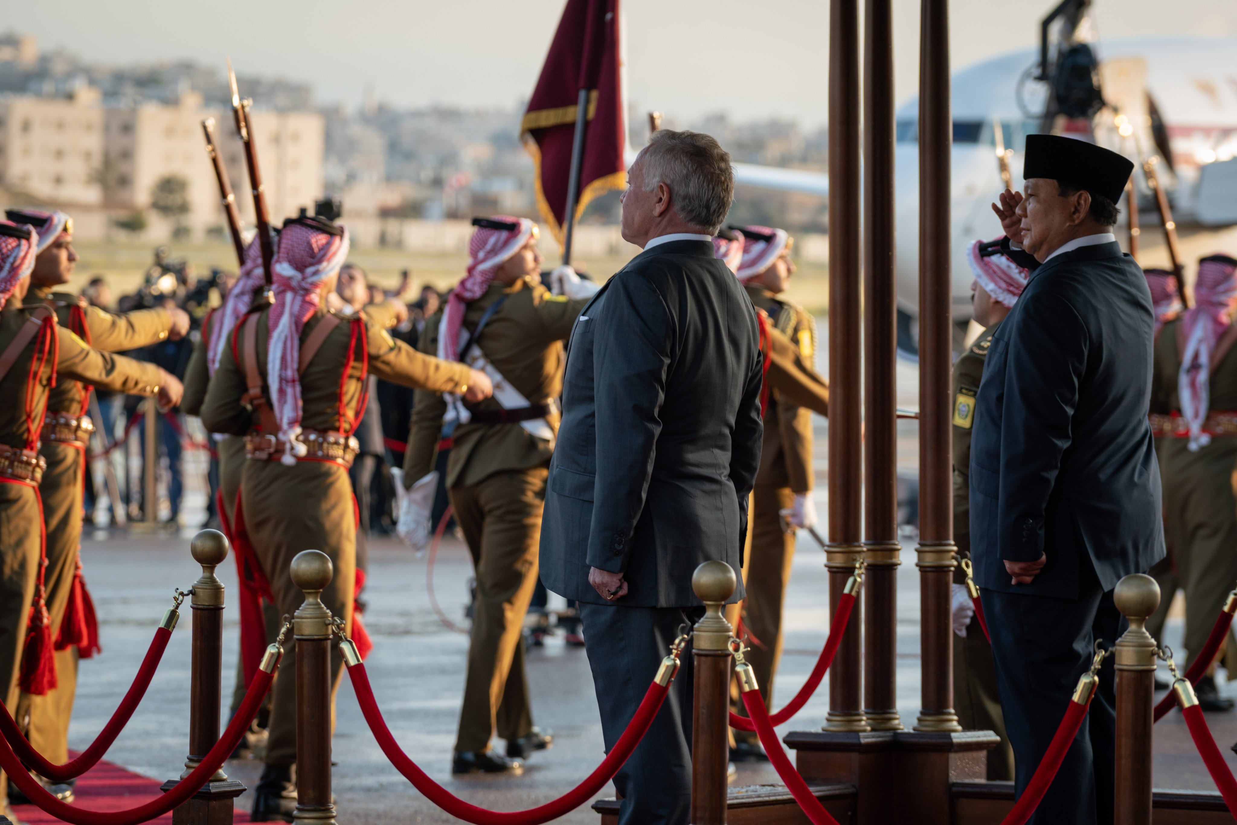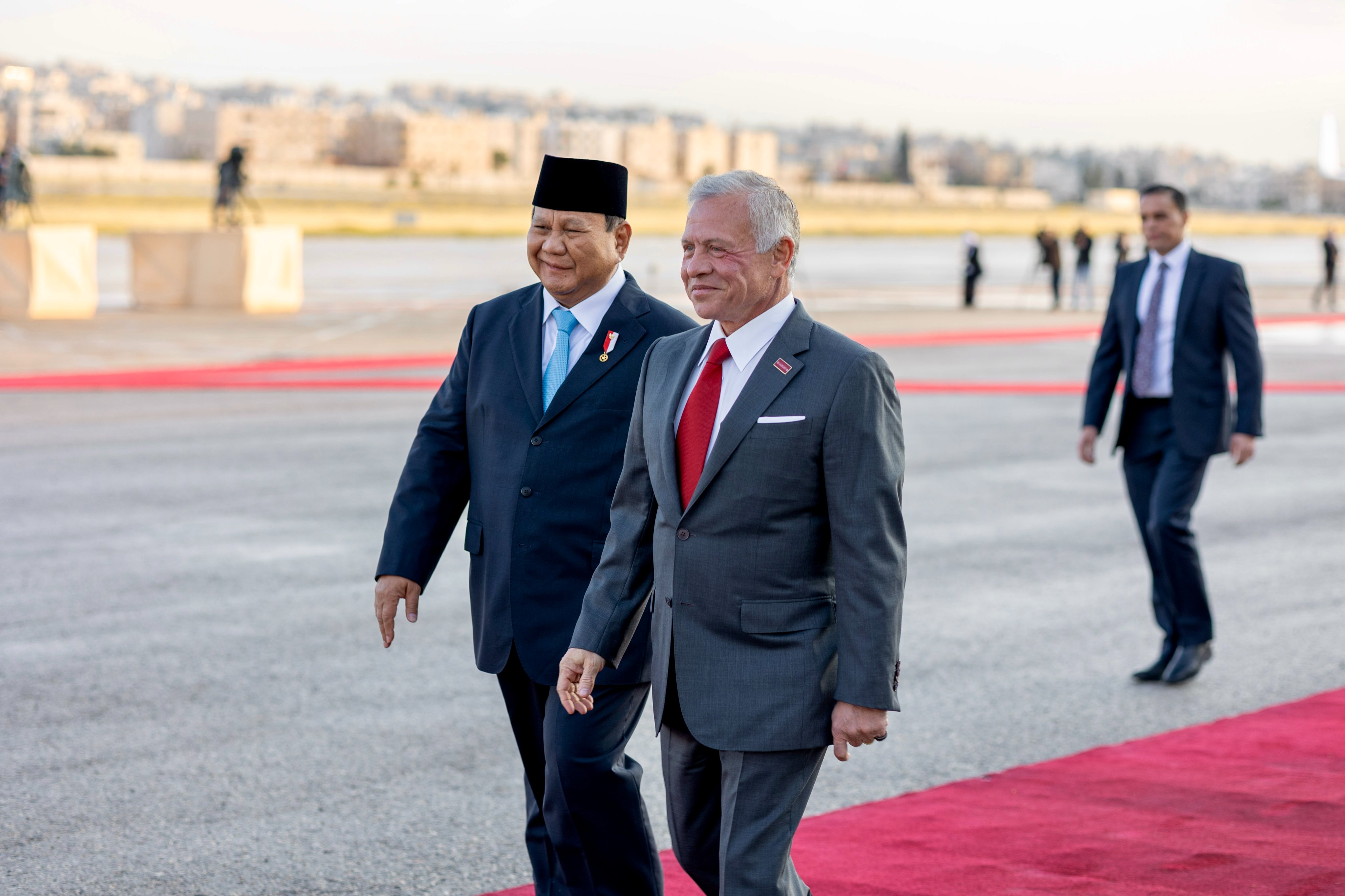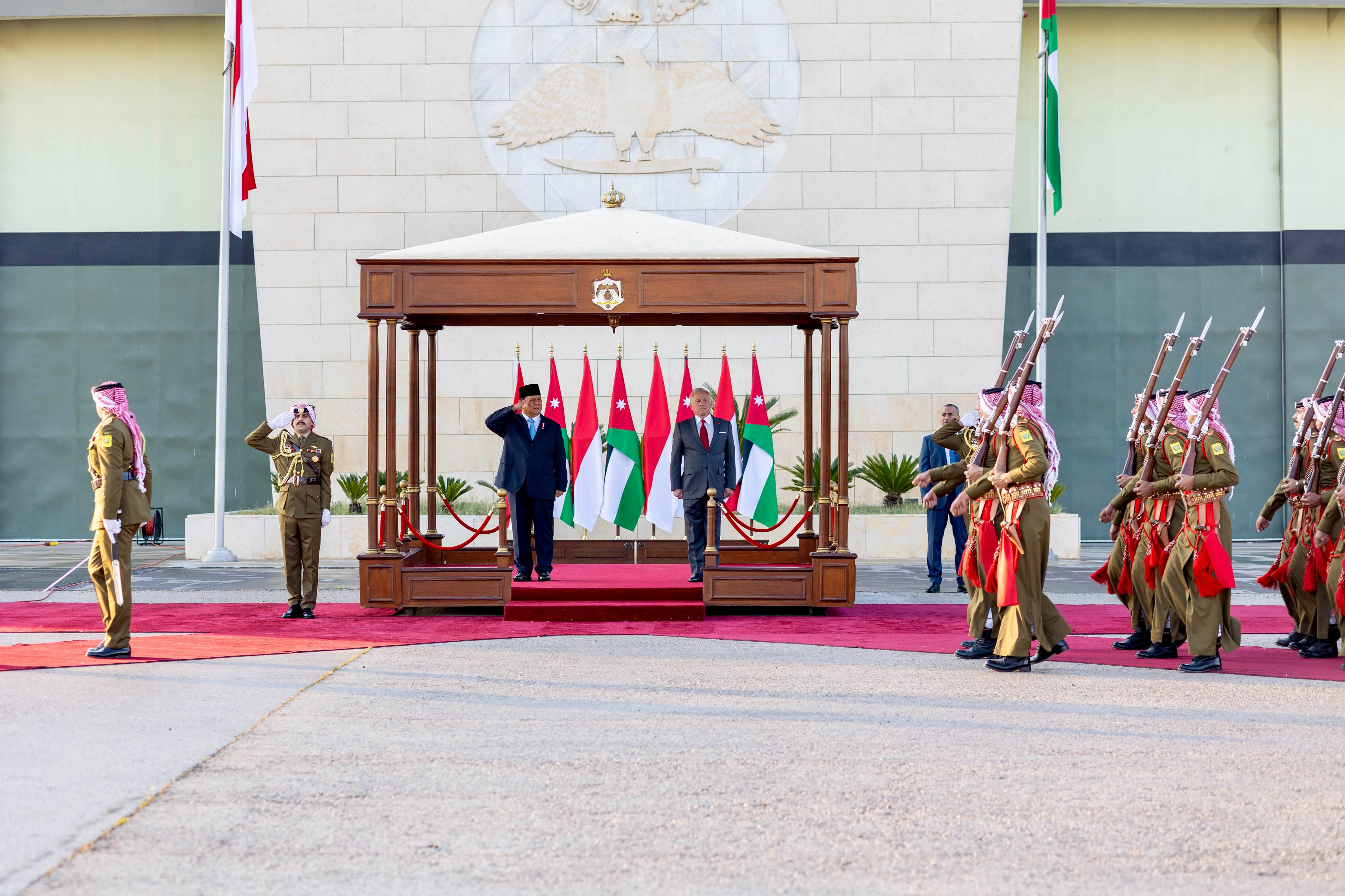 عمون - استقبل جلالة الملك عبدالله الثاني، اليوم الأحد، الرئيس الإندونيسي برابوو سوبيانتو، لدى وصوله مطار ماركا في زيارة رسمية للأردن تستمر يومين.