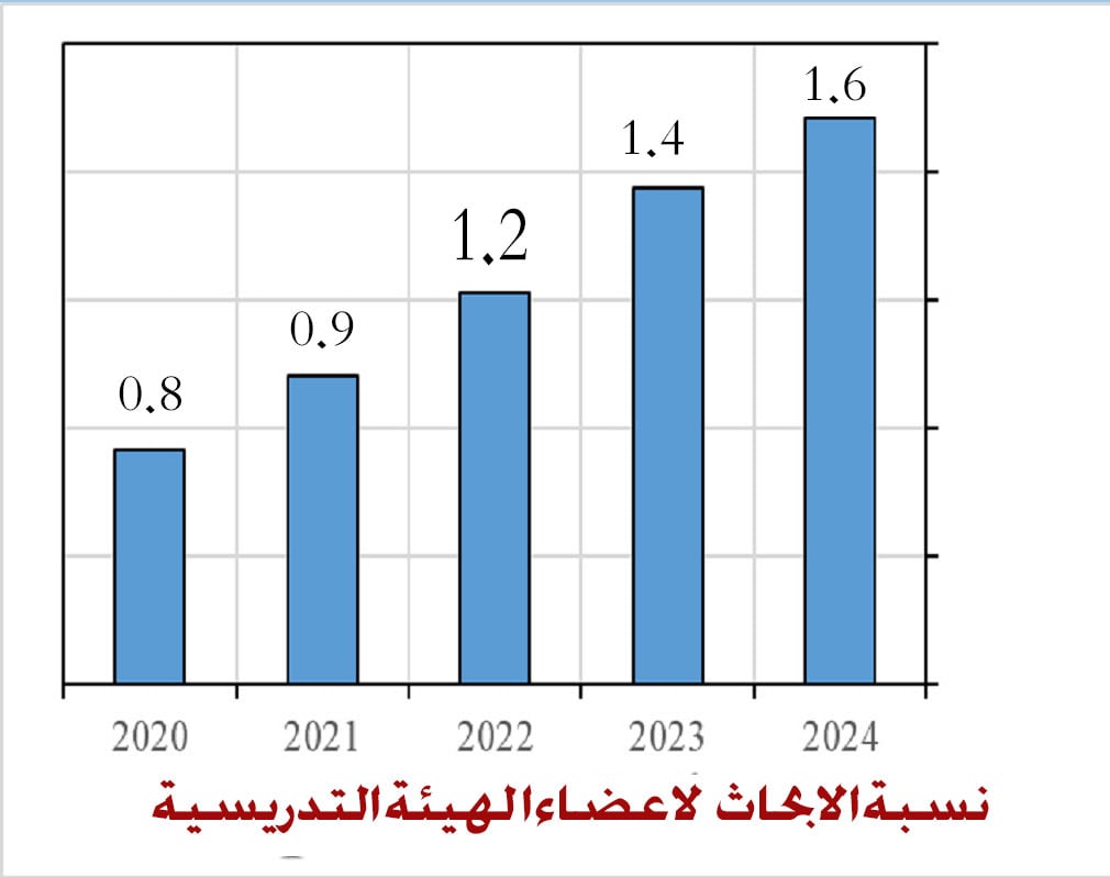 كما حققت نسبة النشر الأكاديمي لكل عضو هيئة تدريس ارتفاعا واسعا حيث بلغت 1.6 في عام 2024 مقارنة بـ 0.8 في عام 2020، مما يعكس مدى التطور البحثي الذي حققته الجامعة ويجعلها في مراكز متقدمة في النشر العلمي بالمجلات العالمية المرموقة وفي الإنجازات البحثية وبراءات الاختراع المسجلة لباحثيها.