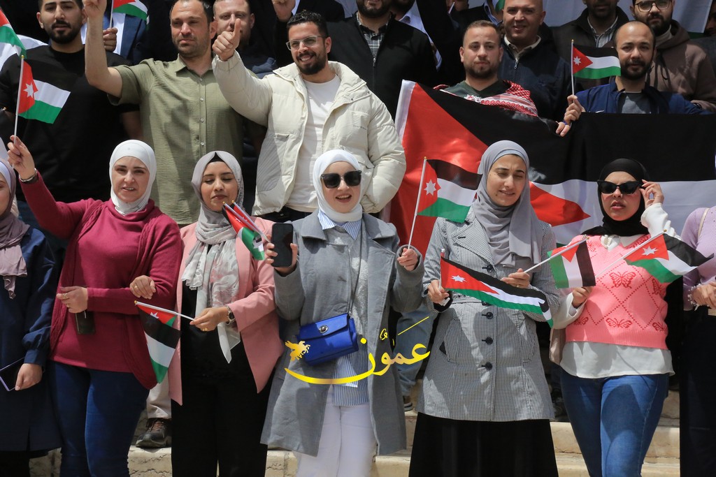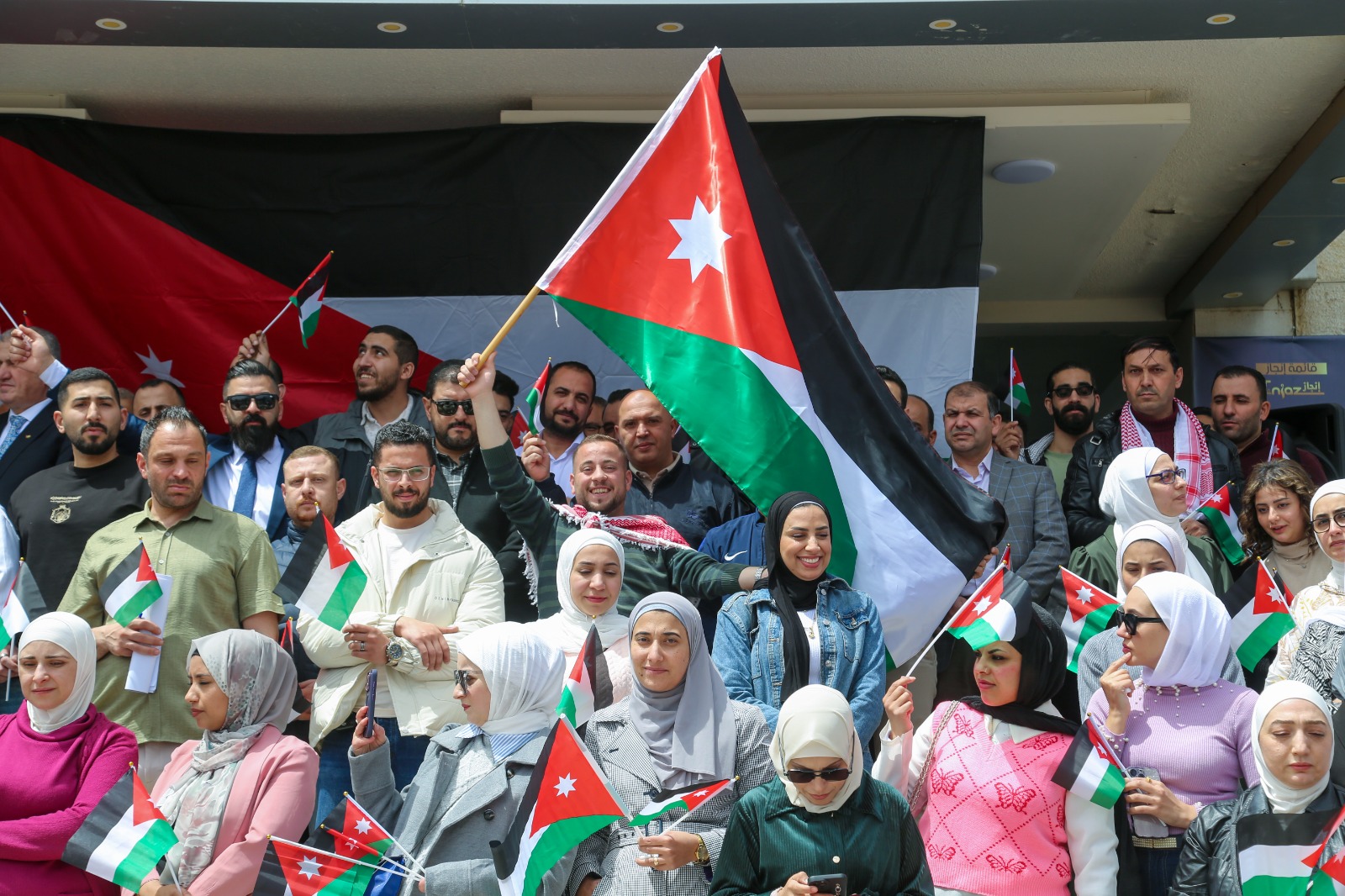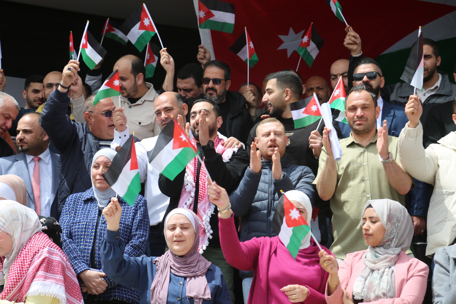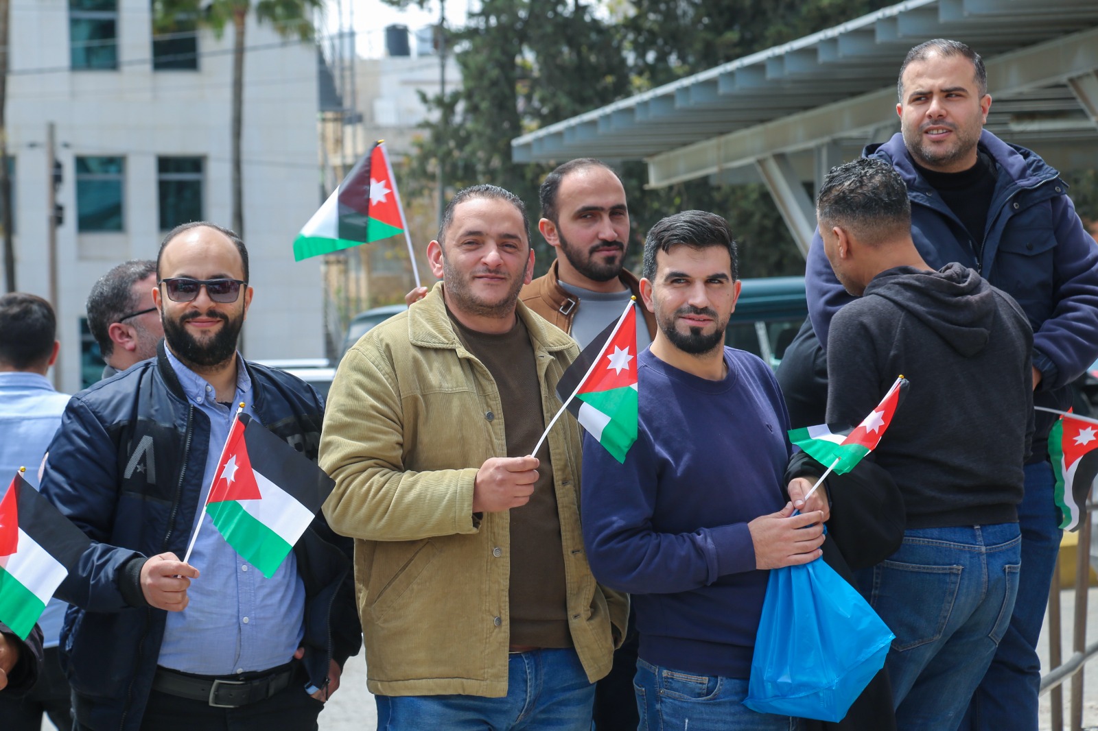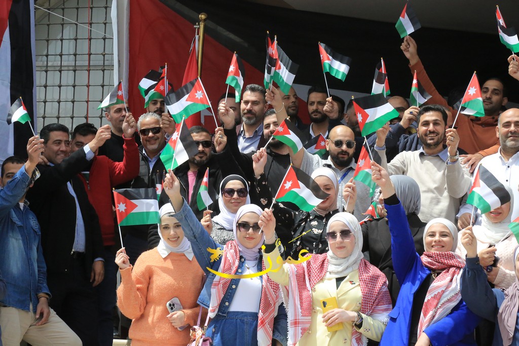 ورفع المشاركون في الوقفة، العلم الأردني عاليا على أنغام السلام الملكي، حيث أكد المشاركون في الوقفة، اعتزازهم بالعلم كرمز للسيادة الوطنية ووحدة الشعب، مجددين ولاءهم للقيادة الهاشمية الحكيمة وانتماءهم لتراب الأردن الطهور.