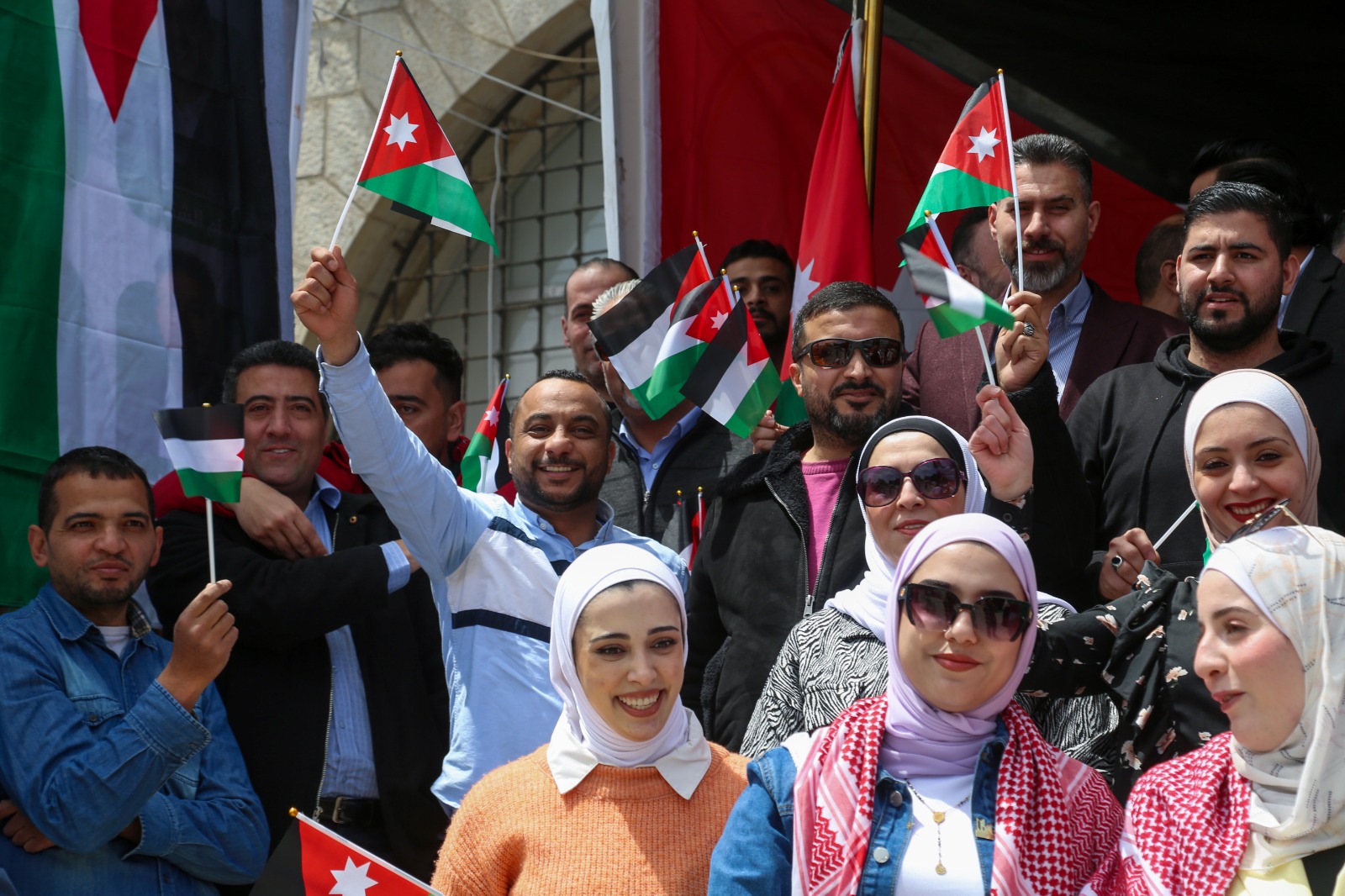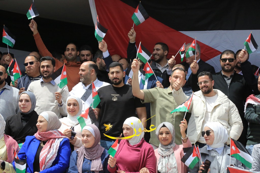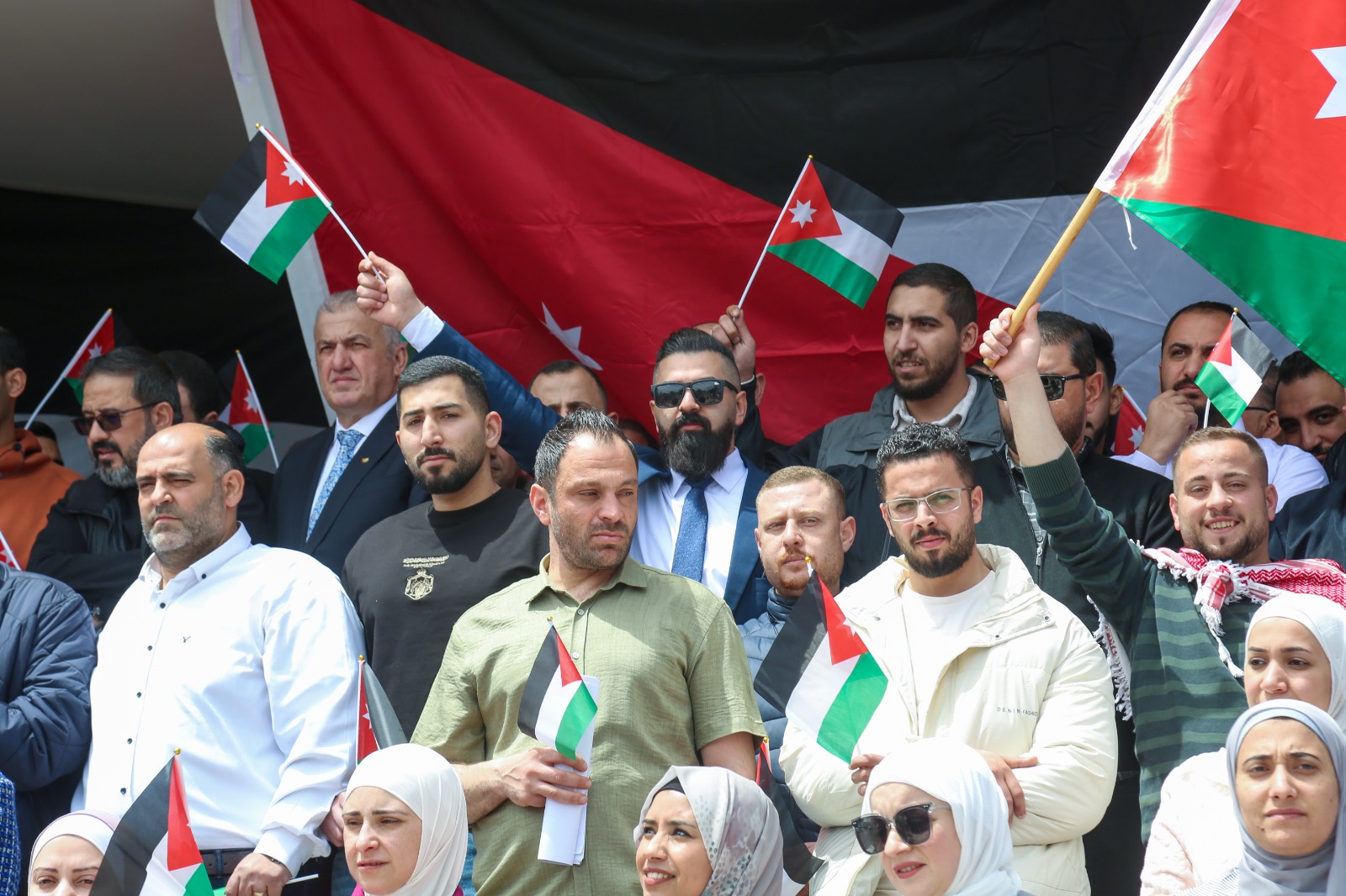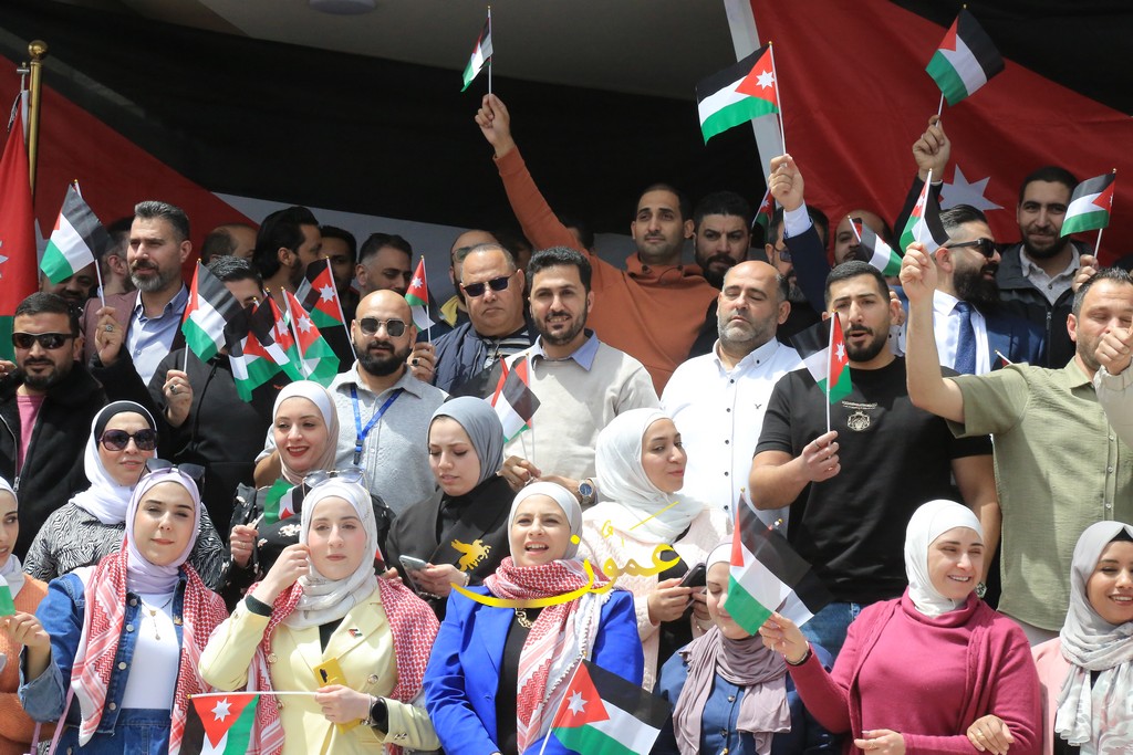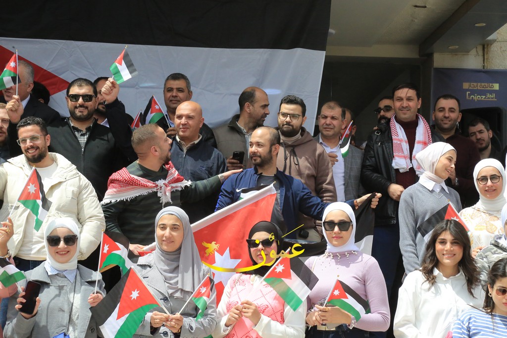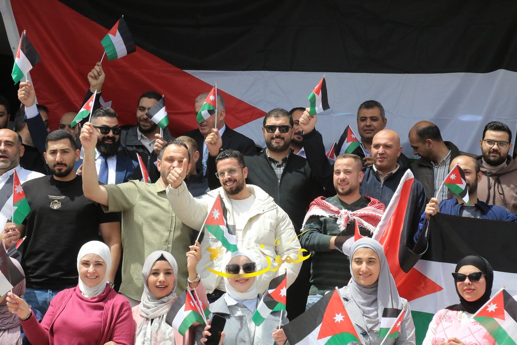 ورفع المشاركون في الوقفة، العلم الأردني عاليا على أنغام السلام الملكي، حيث أكد المشاركون في الوقفة، اعتزازهم بالعلم كرمز للسيادة الوطنية ووحدة الشعب، مجددين ولاءهم للقيادة الهاشمية الحكيمة وانتماءهم لتراب الأردن الطهور.
