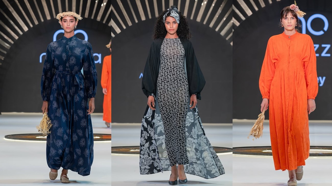 قدمت المصممتان: كاتليا نيلسن وعائشة محمد، مؤسستا «لانوك»، أزياءهما المُستلهمة من التطور المستمر للحديث عن الموضة المحتشمة. وتألقت العارضات بمجموعة «ربيع وصيف 2025»، التي ضمنت قطعاً تحتاج إليها المرأة المحتشمة في فصل الصيف، وهي ملابس السباحة التي قدمتها المصممتان بعناصر تعكس الفخر الثقافي والهوية الشخصية، مع الحفاظ على الاستدامة البيئية، وذلك باستخدام أقمشة عالية الجودة بحماية (UPF50+)؛ لضمان أن تجمع ملابس السباحة بين الأناقة والعملية.
