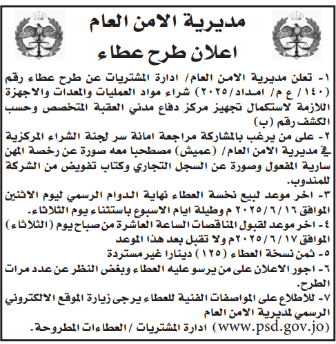 عطاء صادر عن مديرية الامن العام