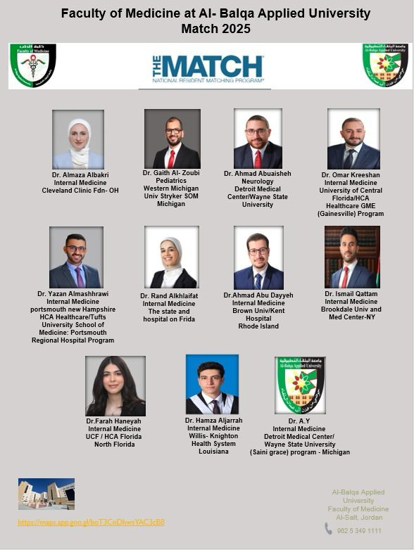 11 طبيبًا من البلقاء التطبيقية يحصلون على قبولات تدريب سريري في أمريكا