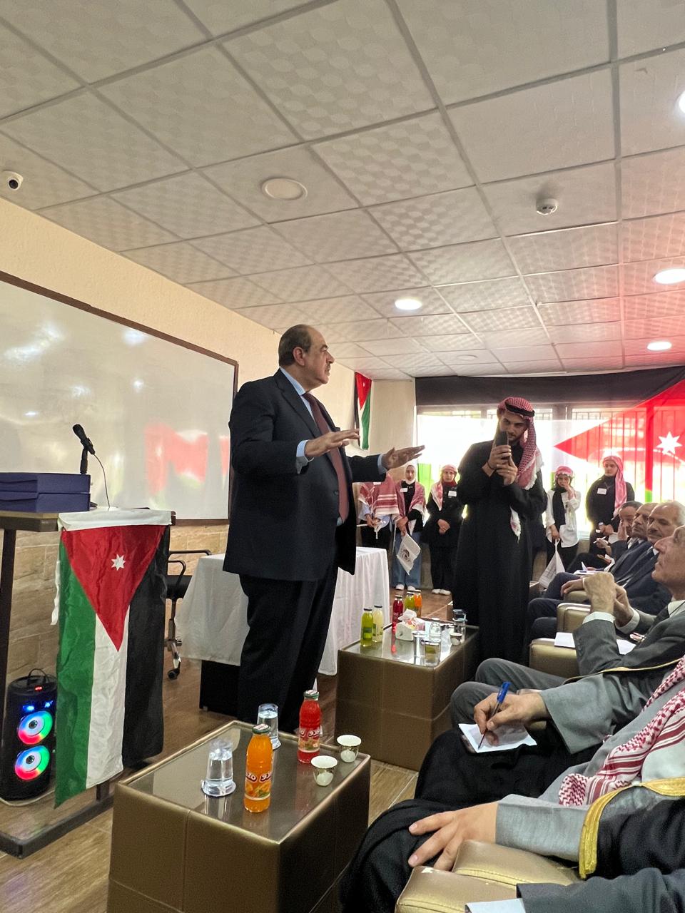 وقال في محاضرته التي تناولت حضارة الاردن ومحتواها الثقافي وأهمية ما يحويه العلم من محتوى معرفي، إن عرب الانباط هم أحفاد نابط ابن سيدنا اسماعيل عليه السلام، وهم أول من استنبط المياه الجوفية من الرمال وشيدوا خزانات المياه لتخزينها، وامتدت جغرافيتهم من النيل إلى الفرات وتفوقوا على الذات البشرية عندما عملوا على بناء مقر رئيسي للدولة بمحمية طبيعية بين الجبال وجعلوها منارة للعمارة والعمران، عبر تجسيدهم لرائعة الإرادة البشرية في التغلب على الصخر إعجاز هندسي فريد صورته الرقيم والبتراء.