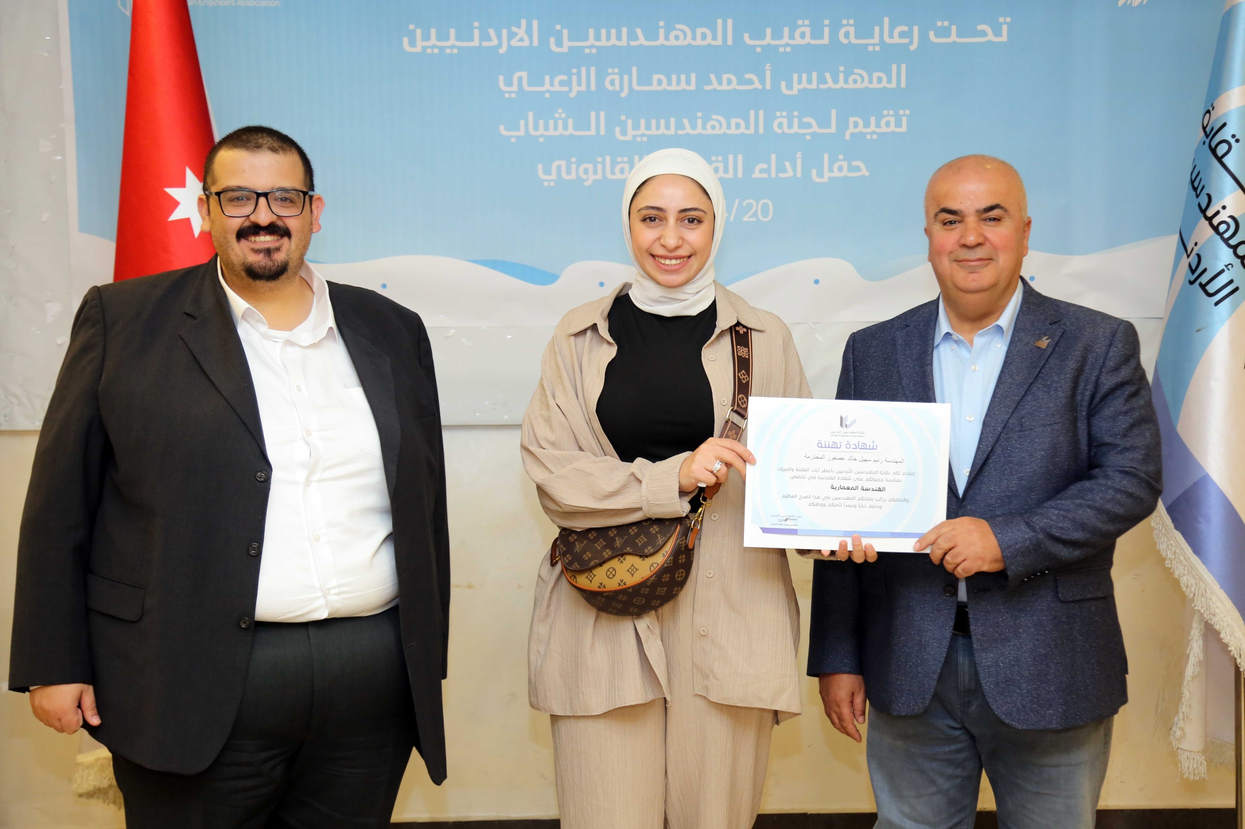 وقدم المهندس الدباس باسم مجلس نقابة المهندسين، التهنئة للمهندسين الجدد بمناسبة انضمامهم الى نقابة المهندسين، داعيا المهندسين الشباب الى ضرورة الانخراط في العمل النقابي والمشاركة في اللجان المختلفة في النقابة، بما ينعكس عليهم ايجابا في بناء العلاقات والحصول على فرص تدريب وتشغيل مختلفة.