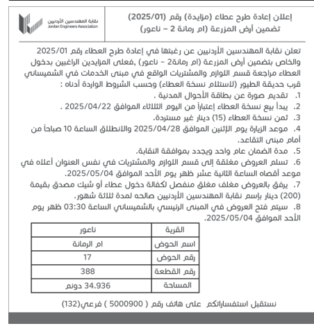 عطاء صادر عن نقابة المهندسين الاردنيين