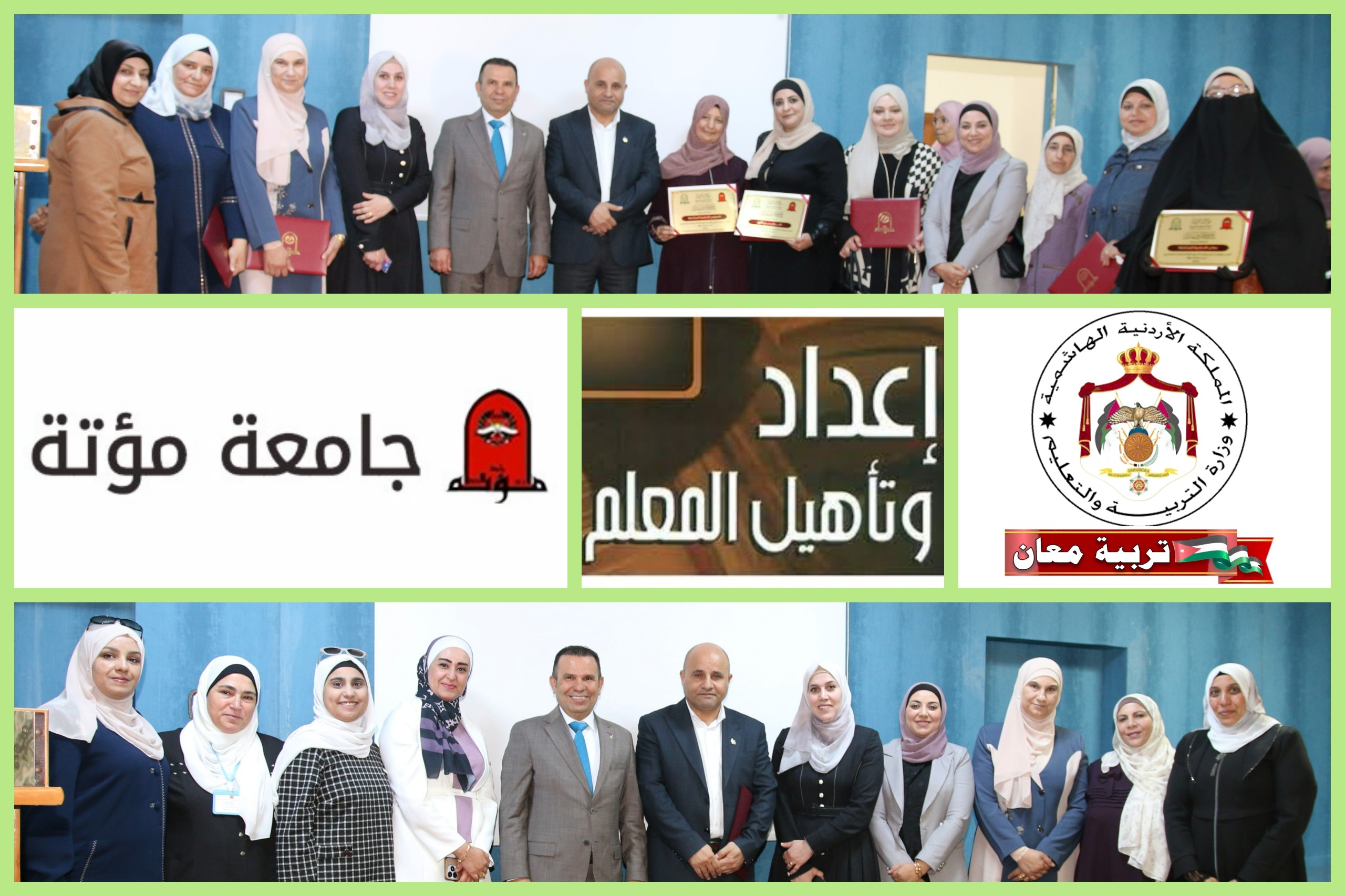 عمون - تابع مدير التربية والتعليم لمنطقة معان الدكتور عدنان الحباشنة يرافقه عميد كلية العلوم التربوية في جامعة مؤته الأستاذ الدكتور عبد الناصر القرالة، حفل تكريم المدارس المتعاونة في تنفيذ برنامج الدبلوم المهني لإعداد المعلمين قبل الخدمة وذلك في مديرية التربية والتعليم لمنطقة معان.