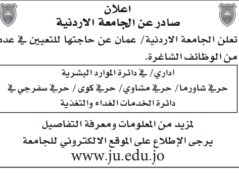وظائف شاغرة لدى الجامعة الاردنية