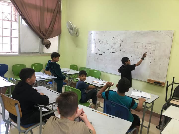عمون - تابع مدير التربية والتعليم للواء الرمثا الدكتور فيصل الحوامدة سير العملية التعليمية التعلمية في مدرسة محيي الدين بن عربي الأساسية (الفترة المسائية/ للطلبة السوريين).