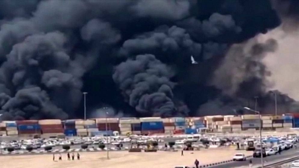 وبث التلفزيون لقطات تظهر عمودا كبيرا من الدخان الأسود يتصاعد في السماء من الميناء.