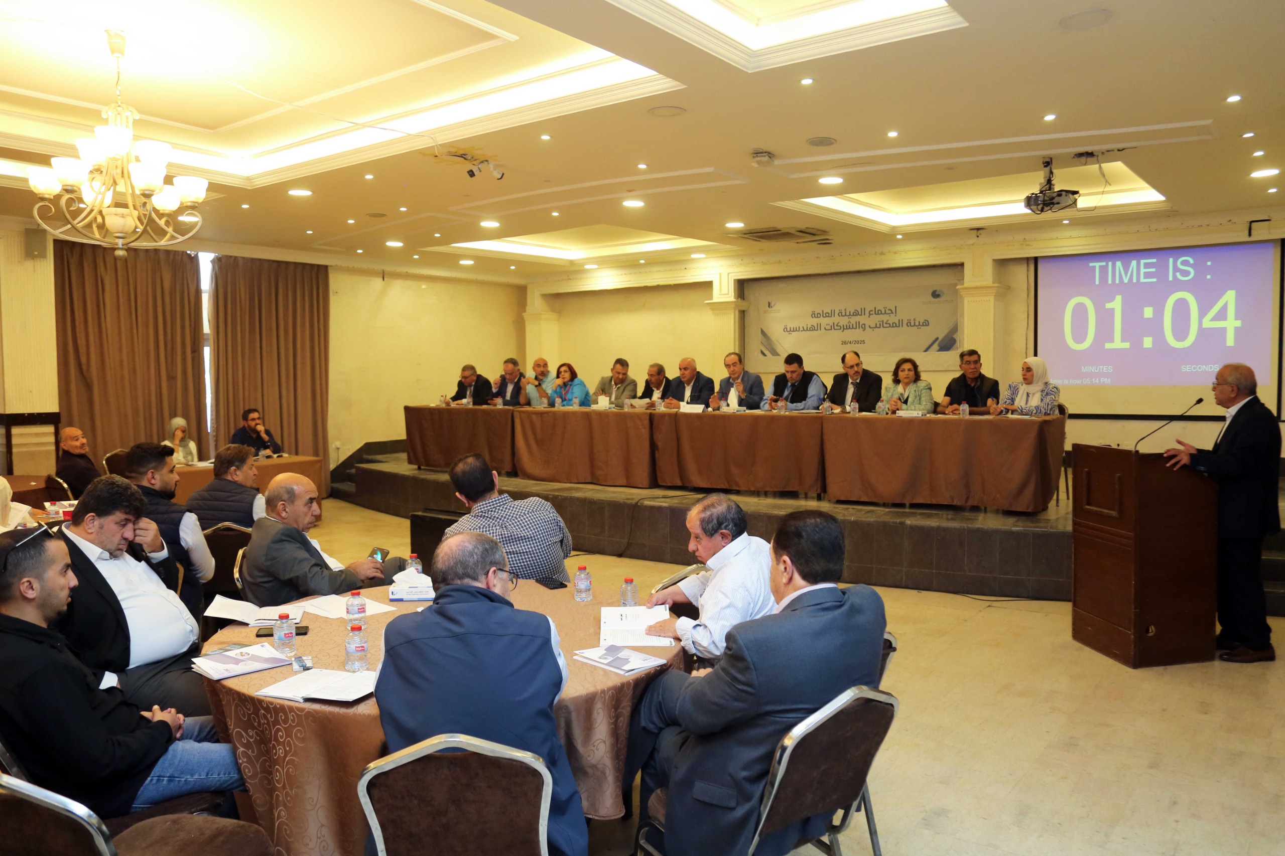 عمون - ناقشت الهيئة العامة لهيئة المكاتب والشركات الهندسية التقرير المقدم من الهيئة عن نشاطاتها للعام2024، بحضور رئيس الهيئة المهندس عبدالله غوشة واعضاء مجلس الهيئة، وممثلا عن مجلس النقابة المهندس عماد الدباس، اليوم السبت في مجمع النقابات المهنية.