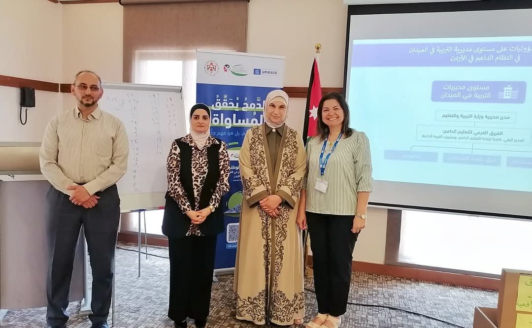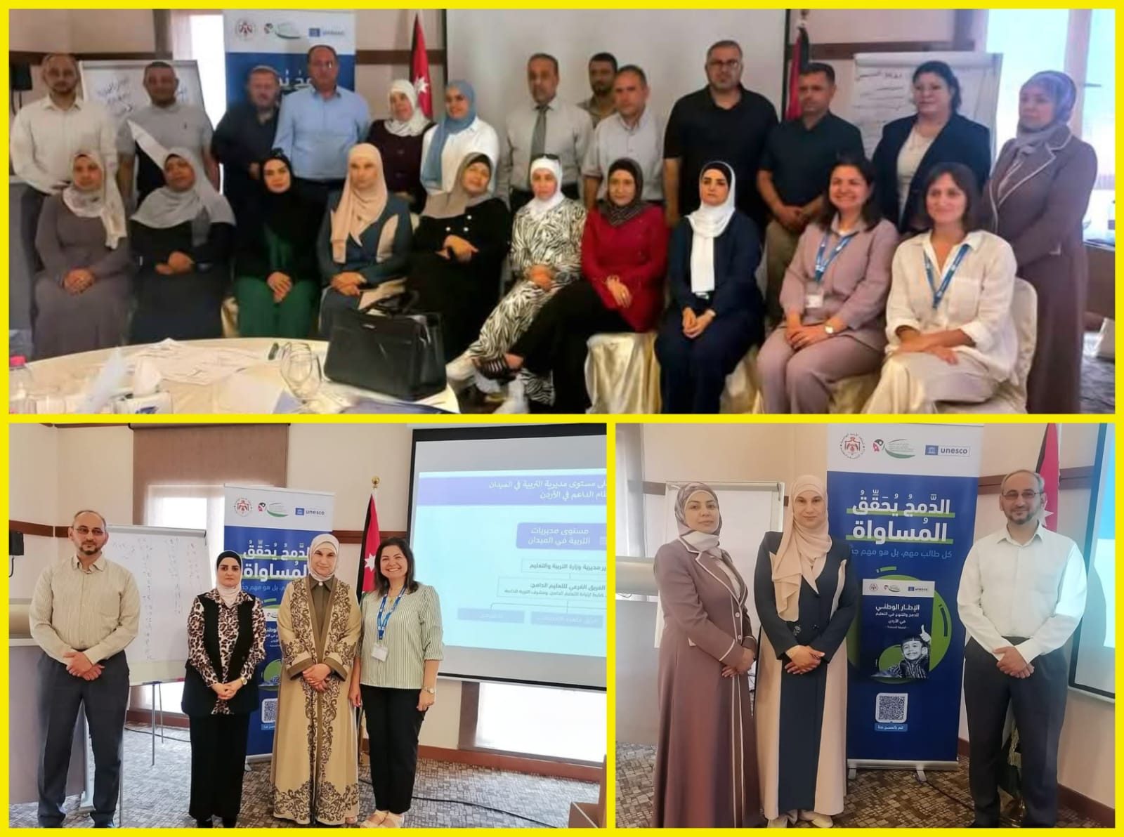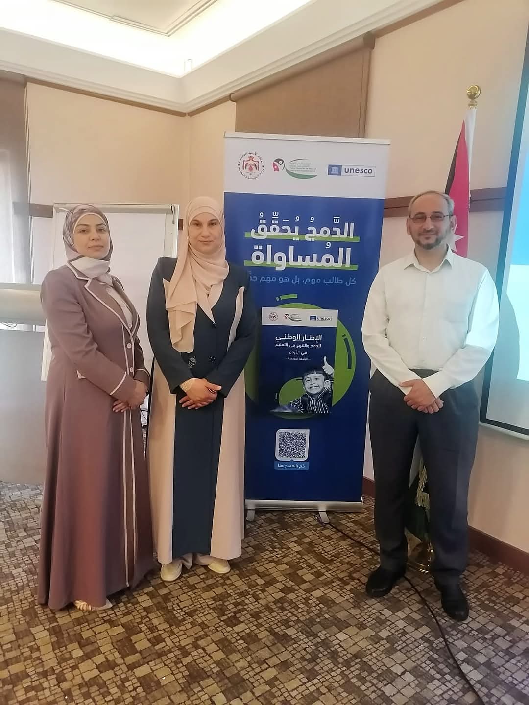 عمون - شاركت اللجنة الفرعية للتعليم الدامج بمديرية التربية والتعليم لمنطقة معان والمكونة من مساعد مدير التربية للشؤون التعليمية السيدة وئام باقر و الأستاذ محمد عدنان خطاب من قسم التعليم العام و شؤون الطلبة و المشرفة التربوية ناديا معتوق من قسم الاشراف التربوي و على مدار يومين ، في ورشة العمل الخاصة بمديريات الجنوب ، لنشر الإطار الوطني للدمج والتنوع في التعليم، بالتعاون مع المجلس الأعلى لحقوق الأشخاص ذوي الإعاقة بدعم من منظمة الأمم المتحدة للتربية والعلوم والثقافة "اليونسكو".