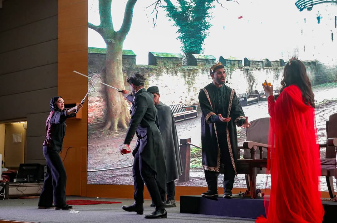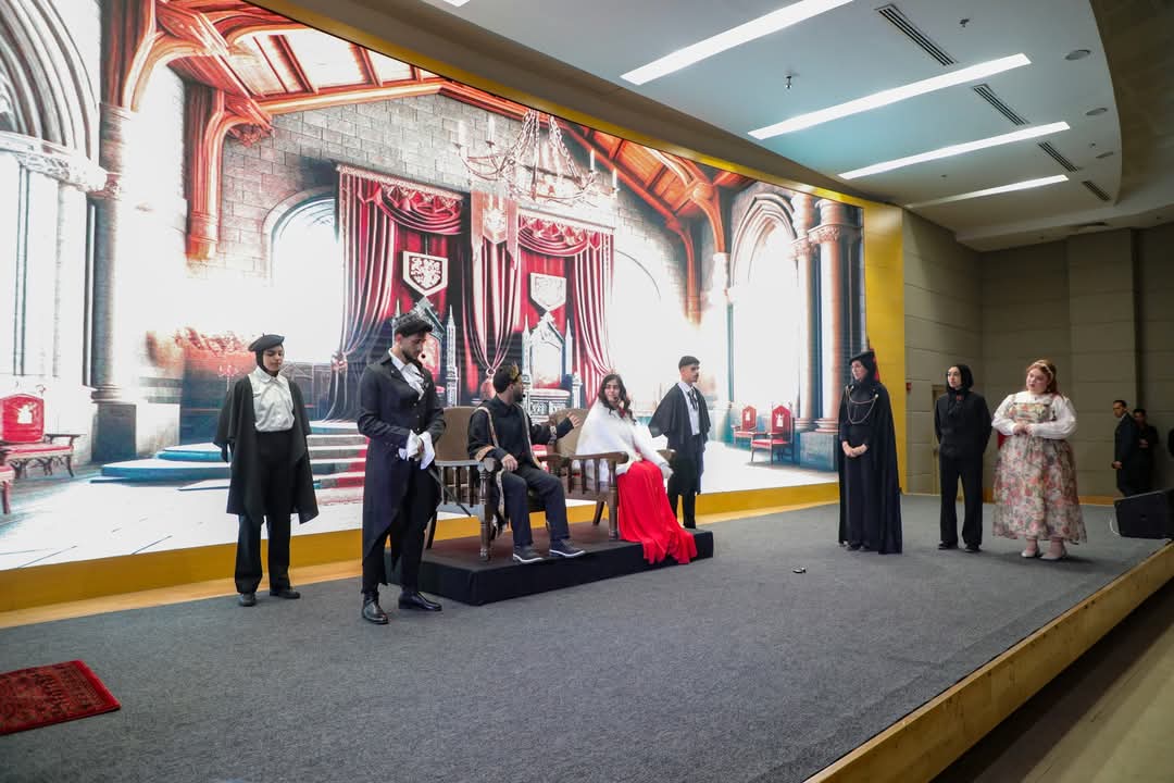 وتمكن الطلبة من تقديم أداء تفاعلي مؤثر نقل الروح الكلاسيكية للمسرحية إلى الجمهور بأسلوب عصري يعكس احترافية وتفاني الفريق المسرحي، مما لاقى إعجاب الحضور الذين أثنوا على قدرتهم في تجسيد الشخصيات ونقل المشاعر بمهارة وطلاقة لغوية عالية.