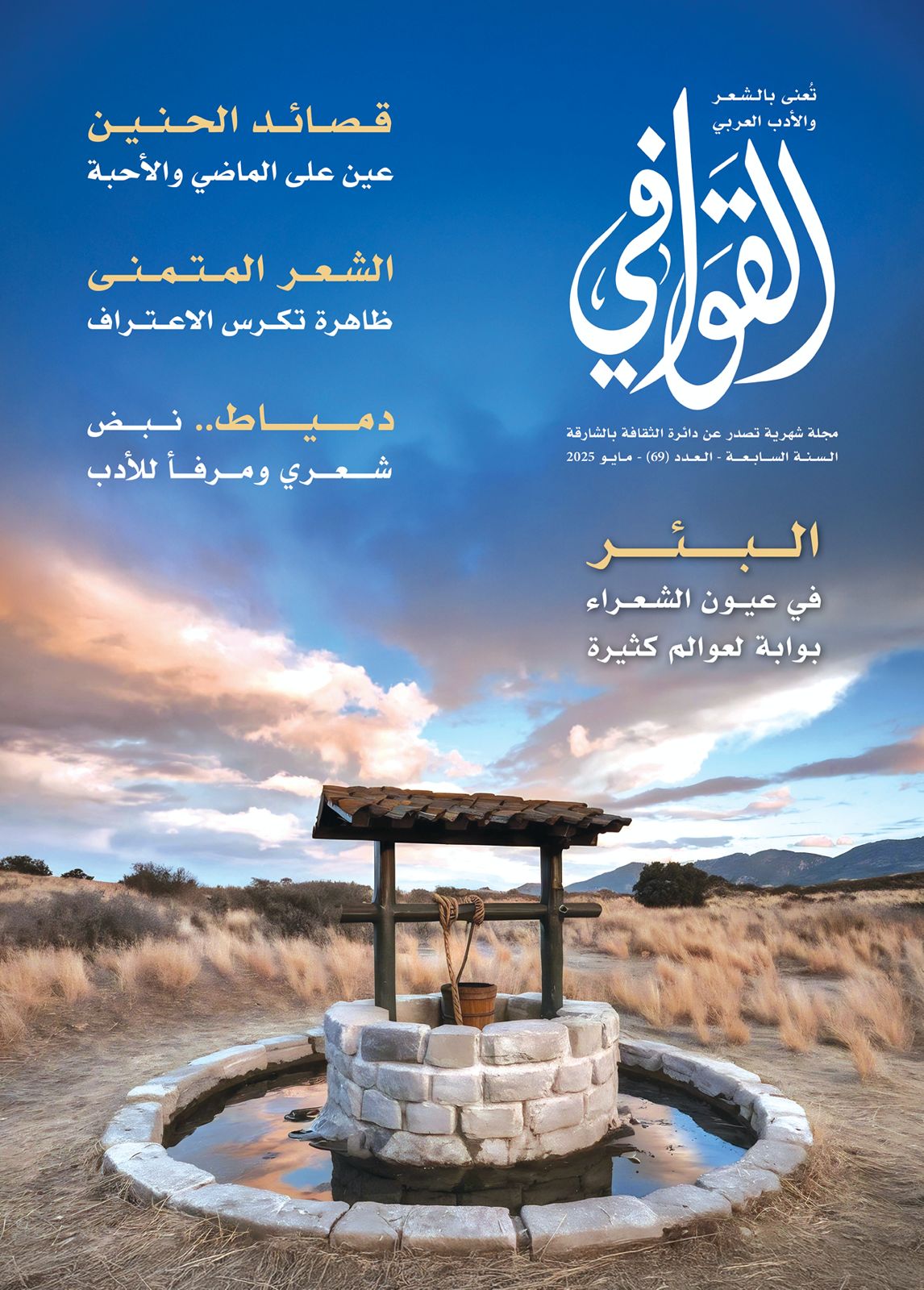 عمون - صدر عن "بيت الشعر" في دائرة الثقافة بالشارقة العدد 69 لشهر مايو من مجلة "القوافي" الشهرية؛ المتخصّصة بالشعر الفصيح ونقده - في عامها السابع- التي تحتفي بالمواضيع ذات الصلة به بلاغةً ولغةً وتراثًا. كما تحتفي بالشعراء من مختلف العصور.