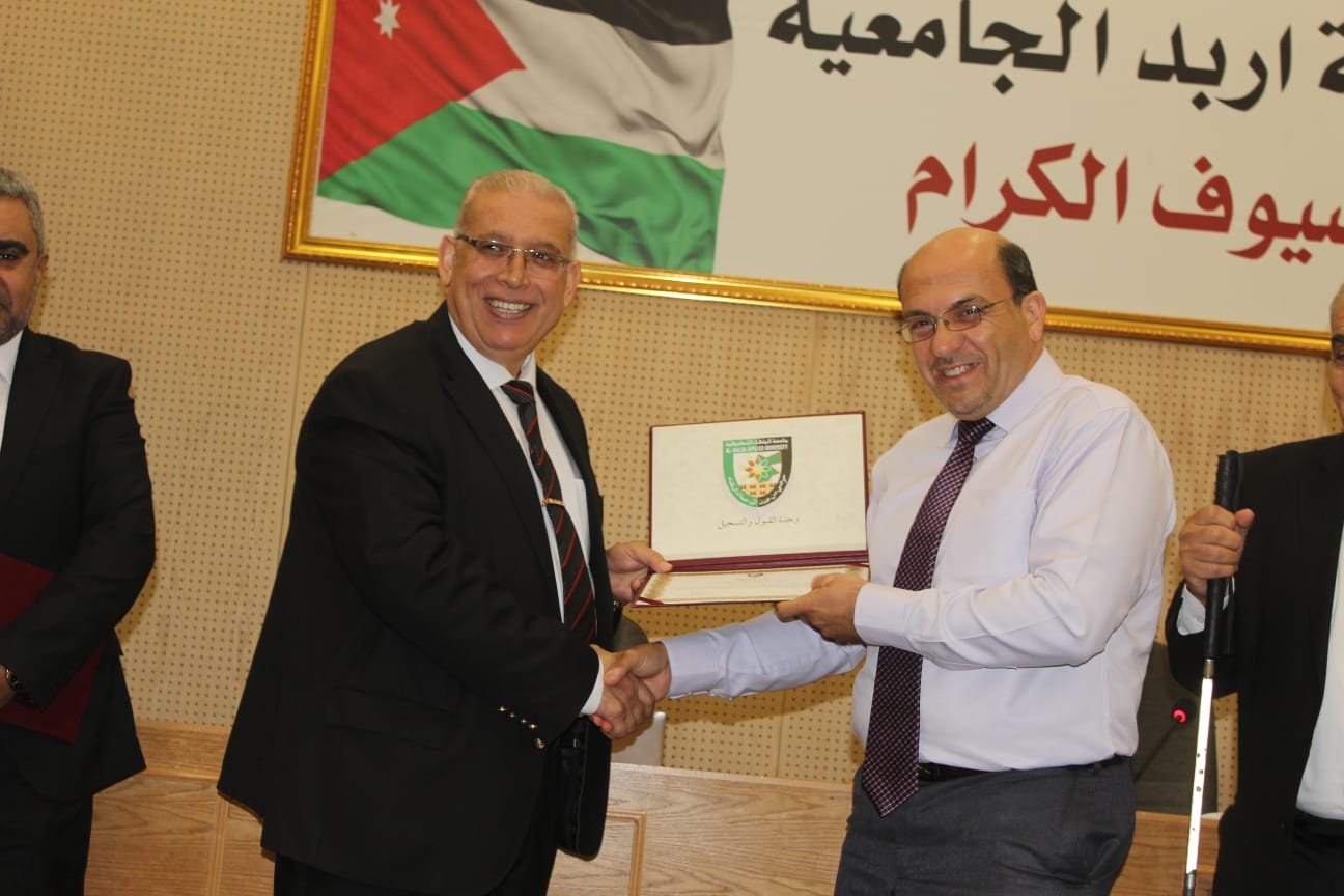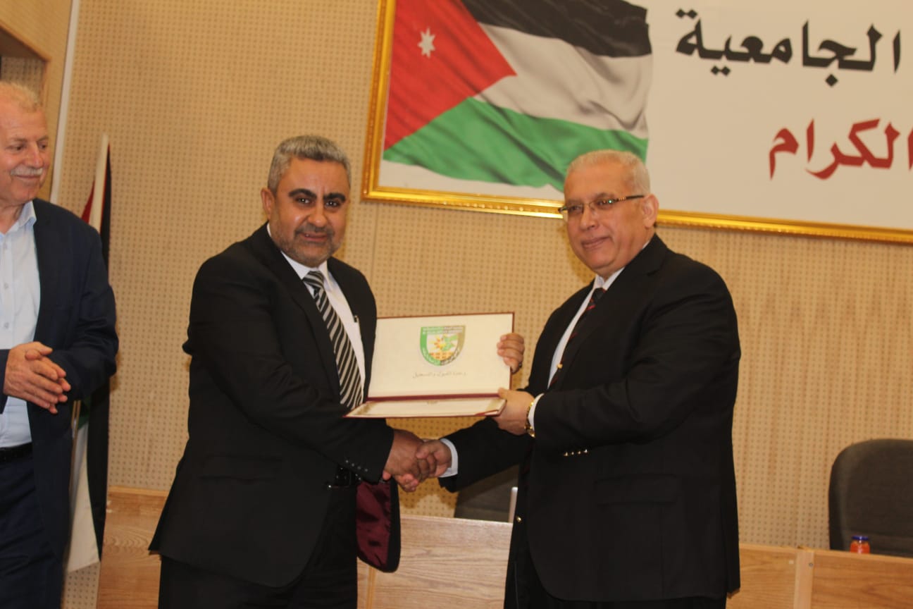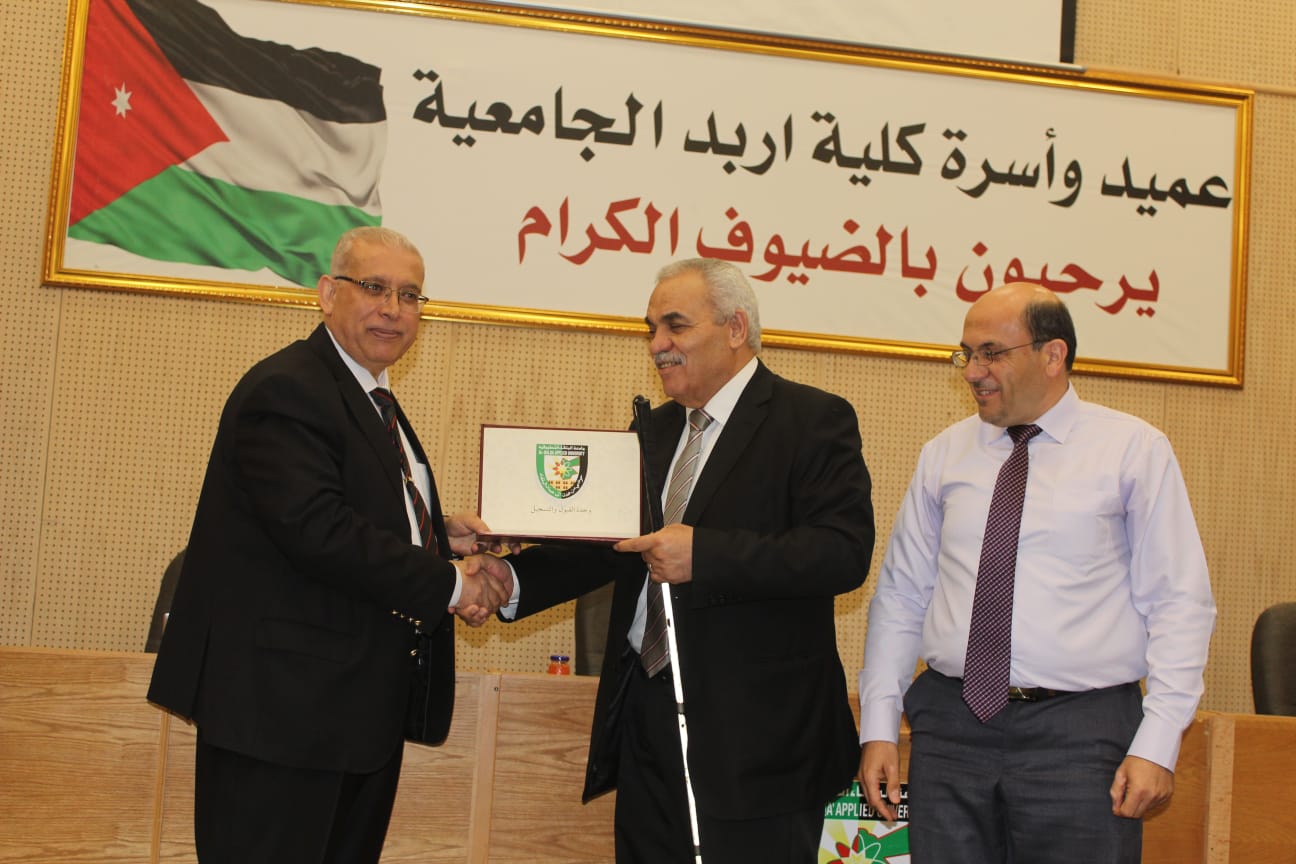 وفي ختام اليوم العلمي قام عميد الكلية الأستاذ الدكتور يحيا سلامه خريسات بتسليم شهادات الشكر والتقدير على المشاركين .