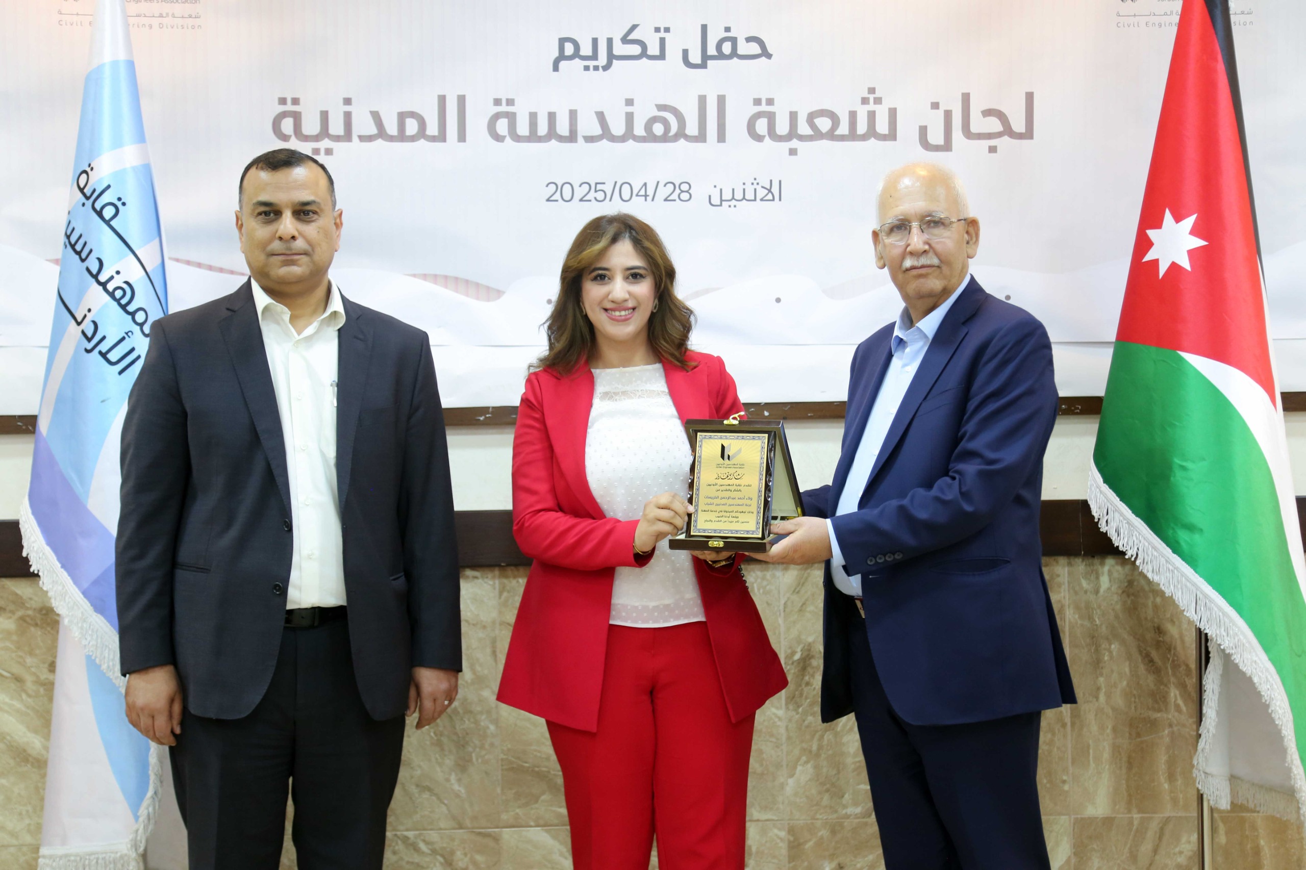 عمون - كرّمت شعبة الهندسة المدنية في نقابة المهندسين الأردنيين، مساء الاثنين، لجانها العاملة، خلال حفل أقيم تحت رعاية نقيب المهندسين المهندس أحمد سمارة الزعبي، وبحضور رئيس الشعبة الدكتور بشار الطراونة، واعضاء الشعبة المدنية المهندس معتز الشوارب، الدكتور انيس الشطناوي ، المهندس ظافر الجيتاوي ، المهندس علي مسلم، والمهندس عبدالناصر الكلباني وامين عام النقابة المهندس علي ناصر.