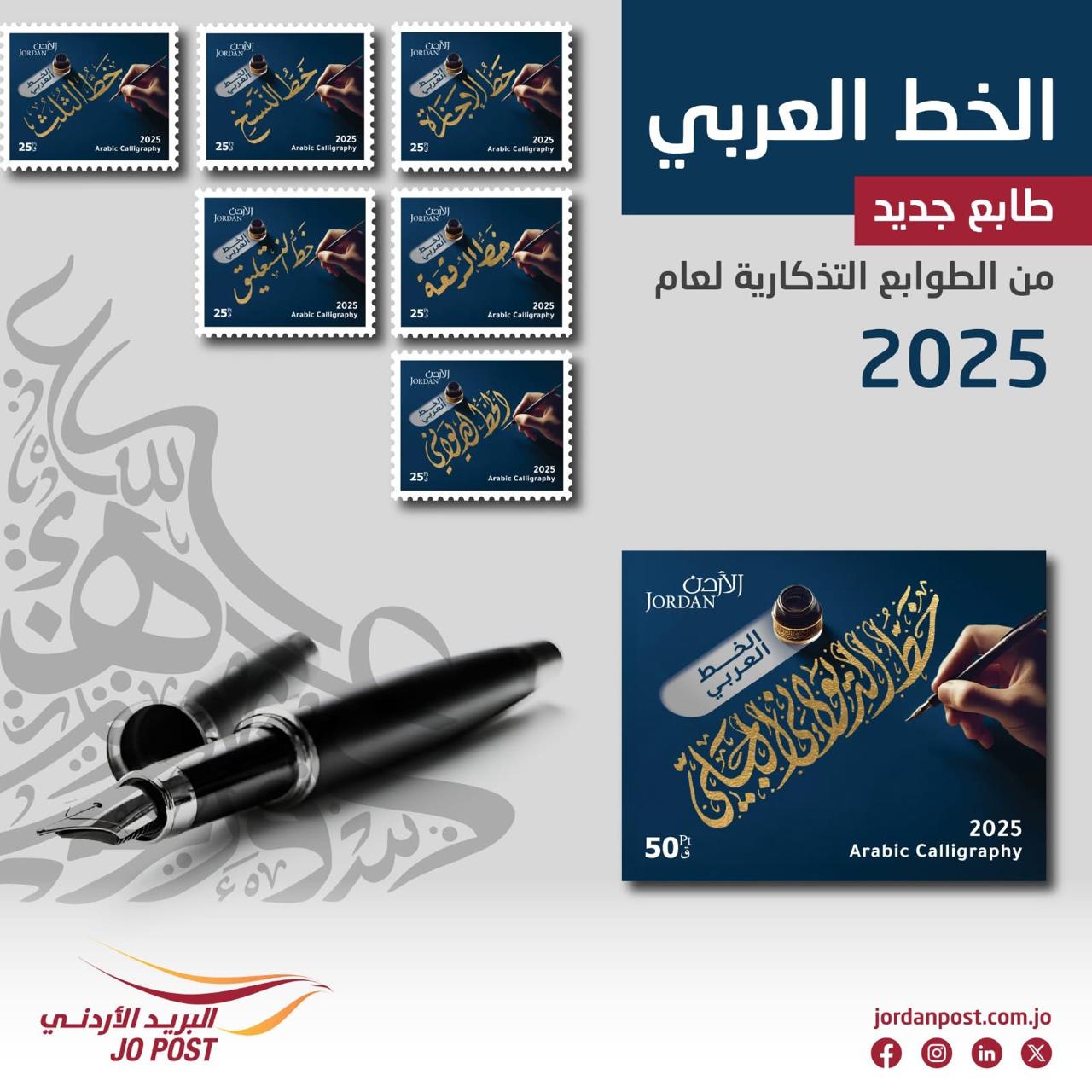 عمون - أعلن البريد الاردني عن طرح إصداراً جديداً من الطوابع التذكارية لعام 2025 بعنوان (الخط العربي) للبيع للجمهور ولهواة الطوابع اعتباراً من صباح يوم الاربعاء الموافق 30/04/2025.