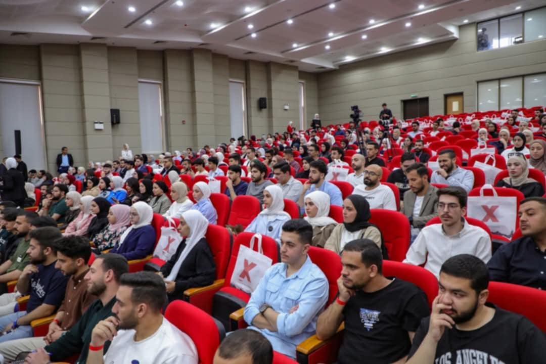 وقد افتتحت فعاليات المؤتمر، بكلمة ترحيبية للجنة المنظمة قدمها الطالب يوسف عصفور والطالبة جيهان عبدالقادر، تحدث فيها الطالب عصفور عن أهمية الحدث الذي يجمع أصحاب الأفكار الريادية والابتكارات الخلاقة والقصص الملهمة التي تروي تجارب النجاح وتجاوز التحديات. كما أعرب عن شكره لإدارة الجامعة وعمادة شؤون الطلبة على دعمهم المستمر، ووجه الشكر للمنظمين والمتطوعين من الطلبة.