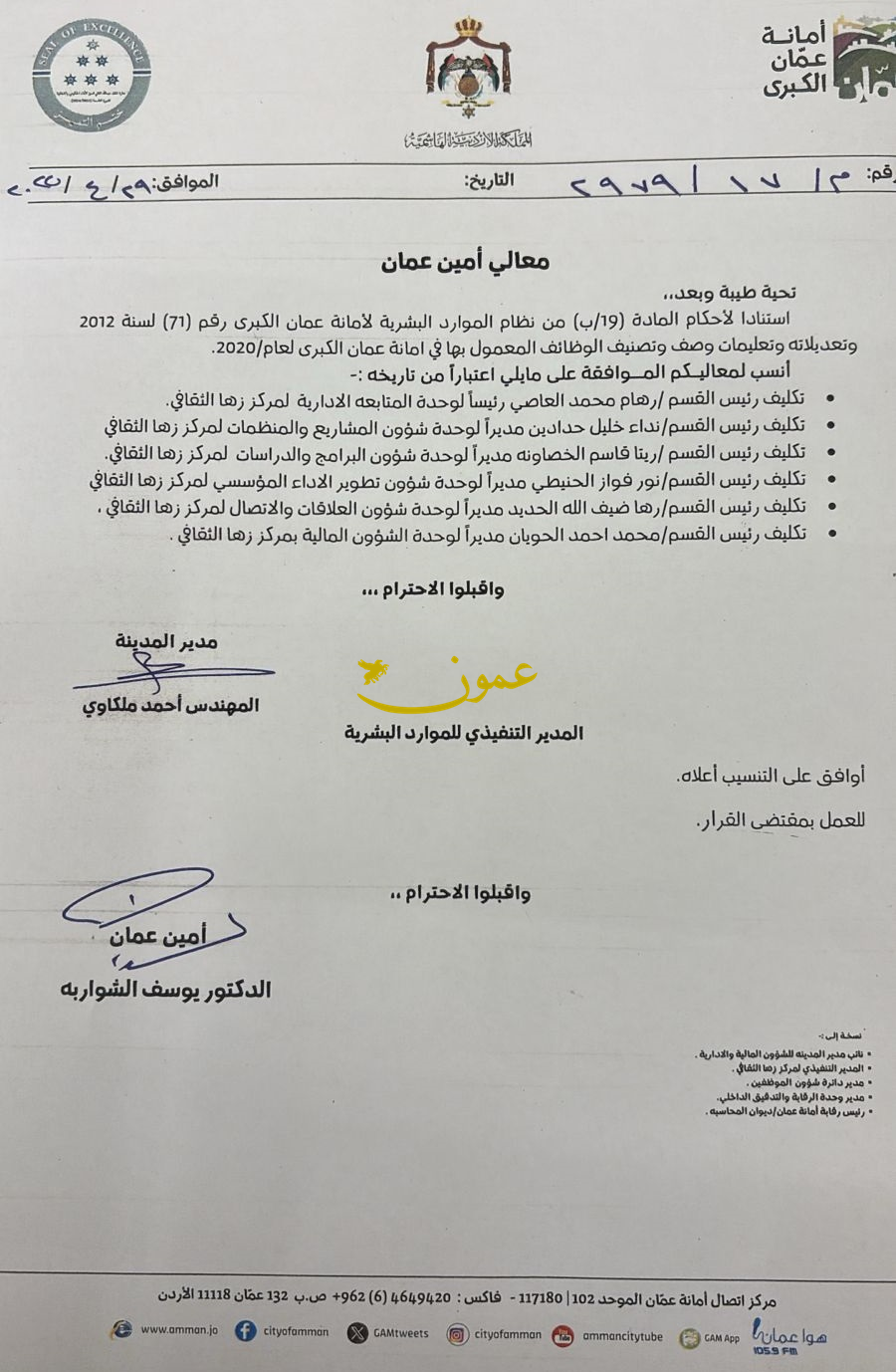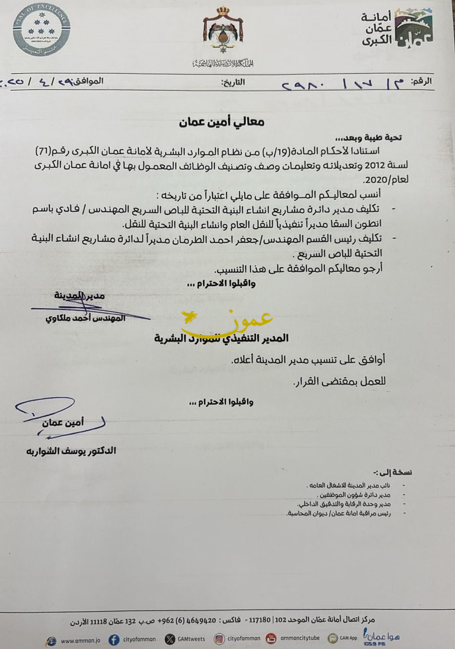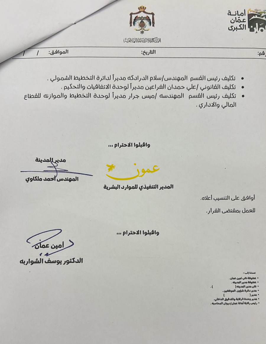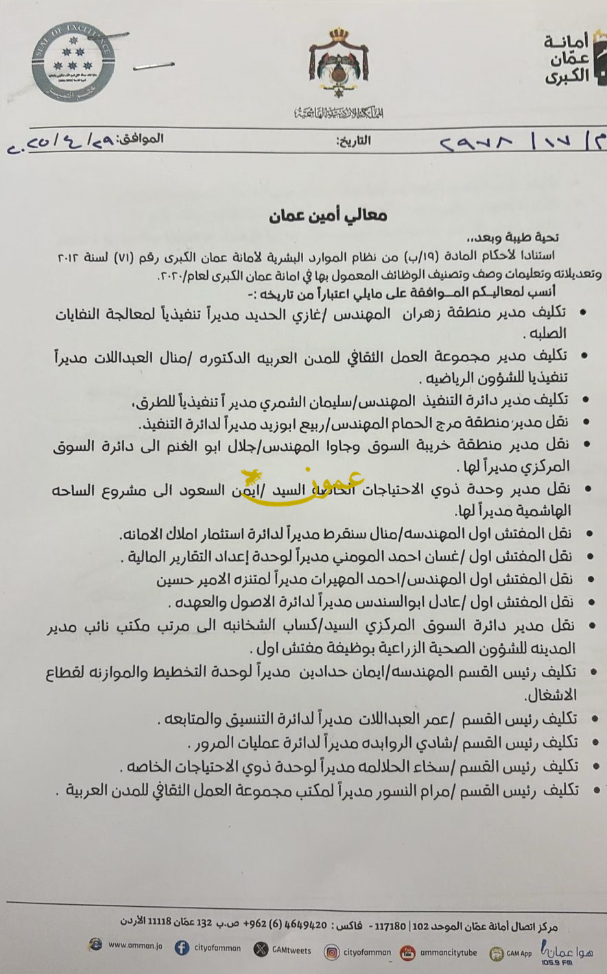 تنقلات إدارية واسعة في أمانة عمان (اسماء)