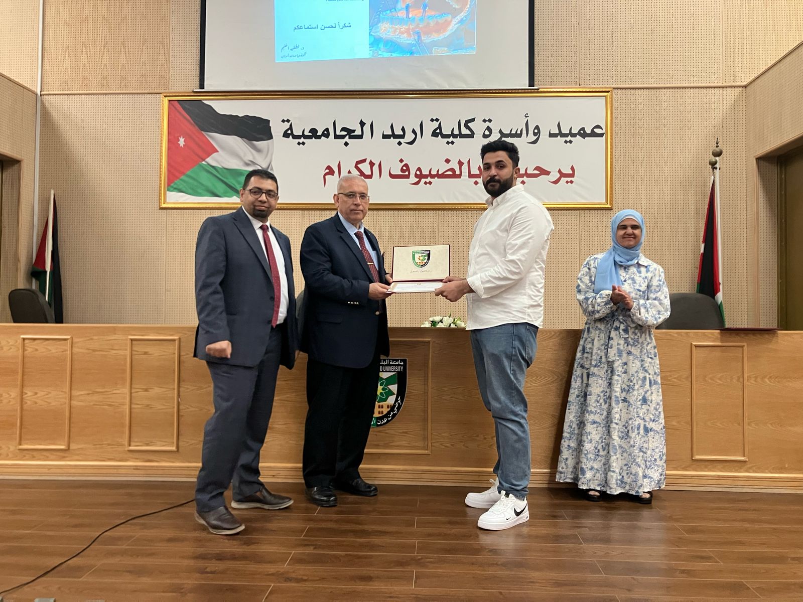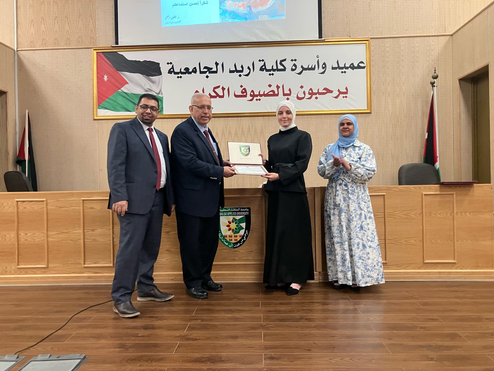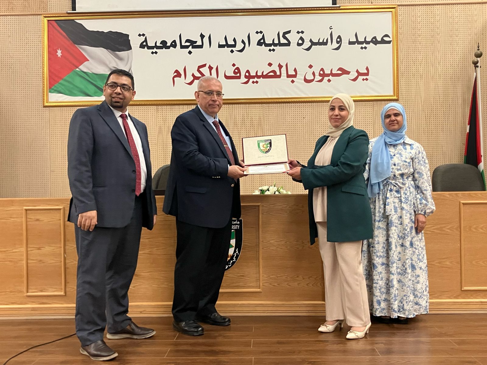 وفي ختام اليوم العلمي لقسم العلوم الصحية التطبيقية قام عميد الكلية الأستاذ الدكتور يحيا سلامه خريسات بتسليم شهادات الشكر والتقدير على المشاركين.