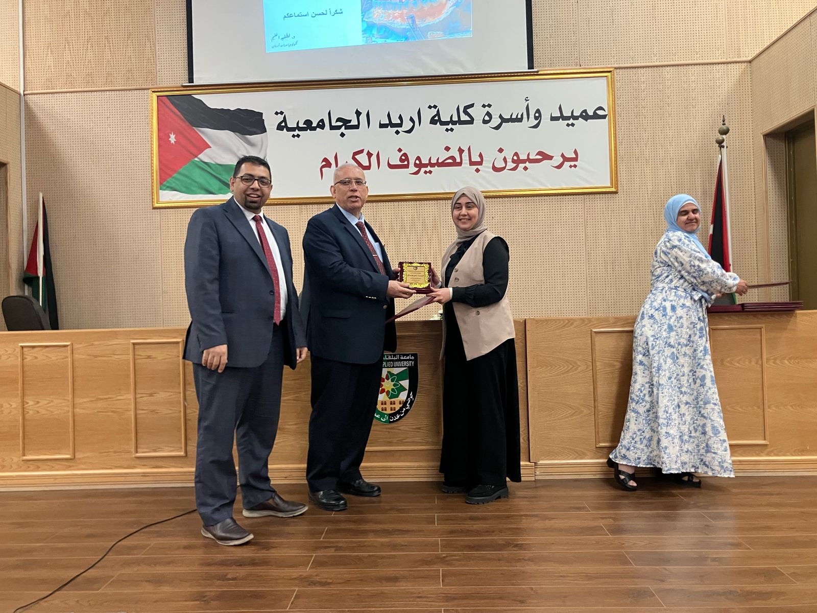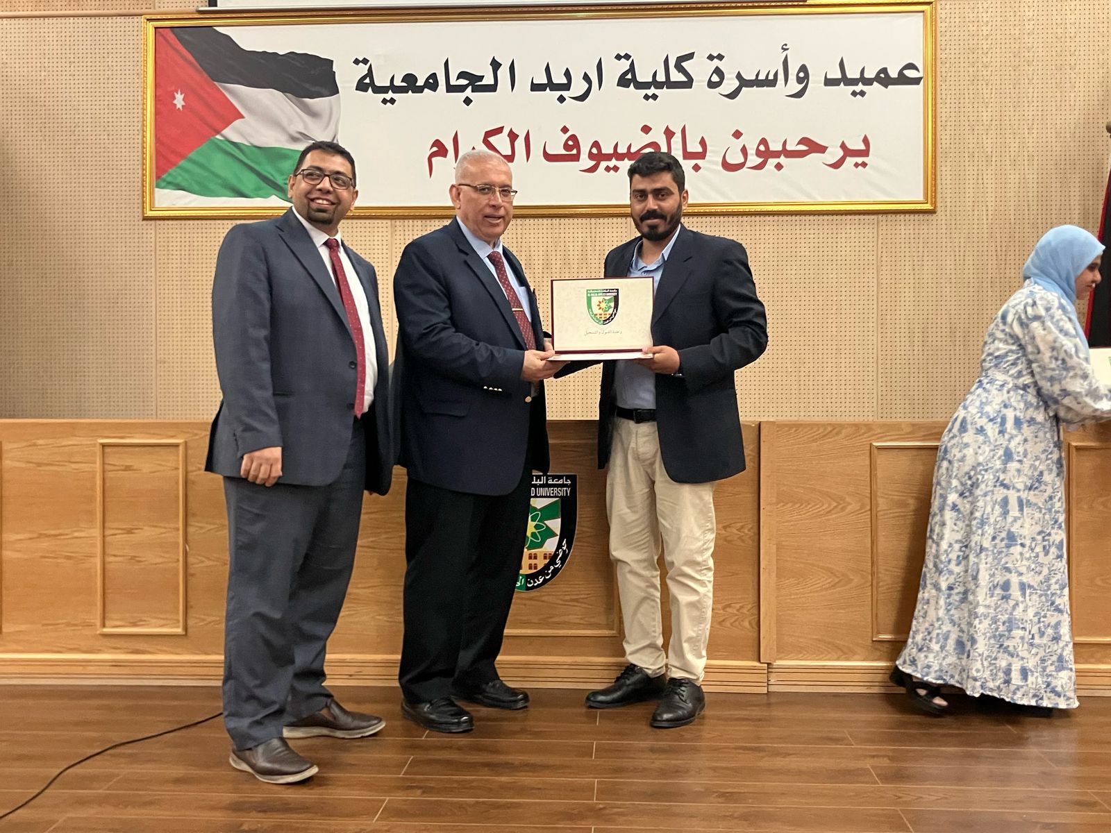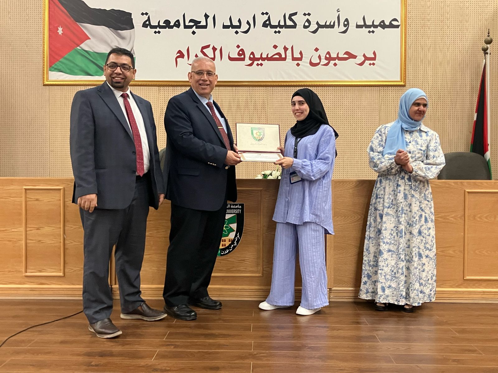 وفي ختام اليوم العلمي لقسم العلوم الصحية التطبيقية قام عميد الكلية الأستاذ الدكتور يحيا سلامه خريسات بتسليم شهادات الشكر والتقدير على المشاركين.