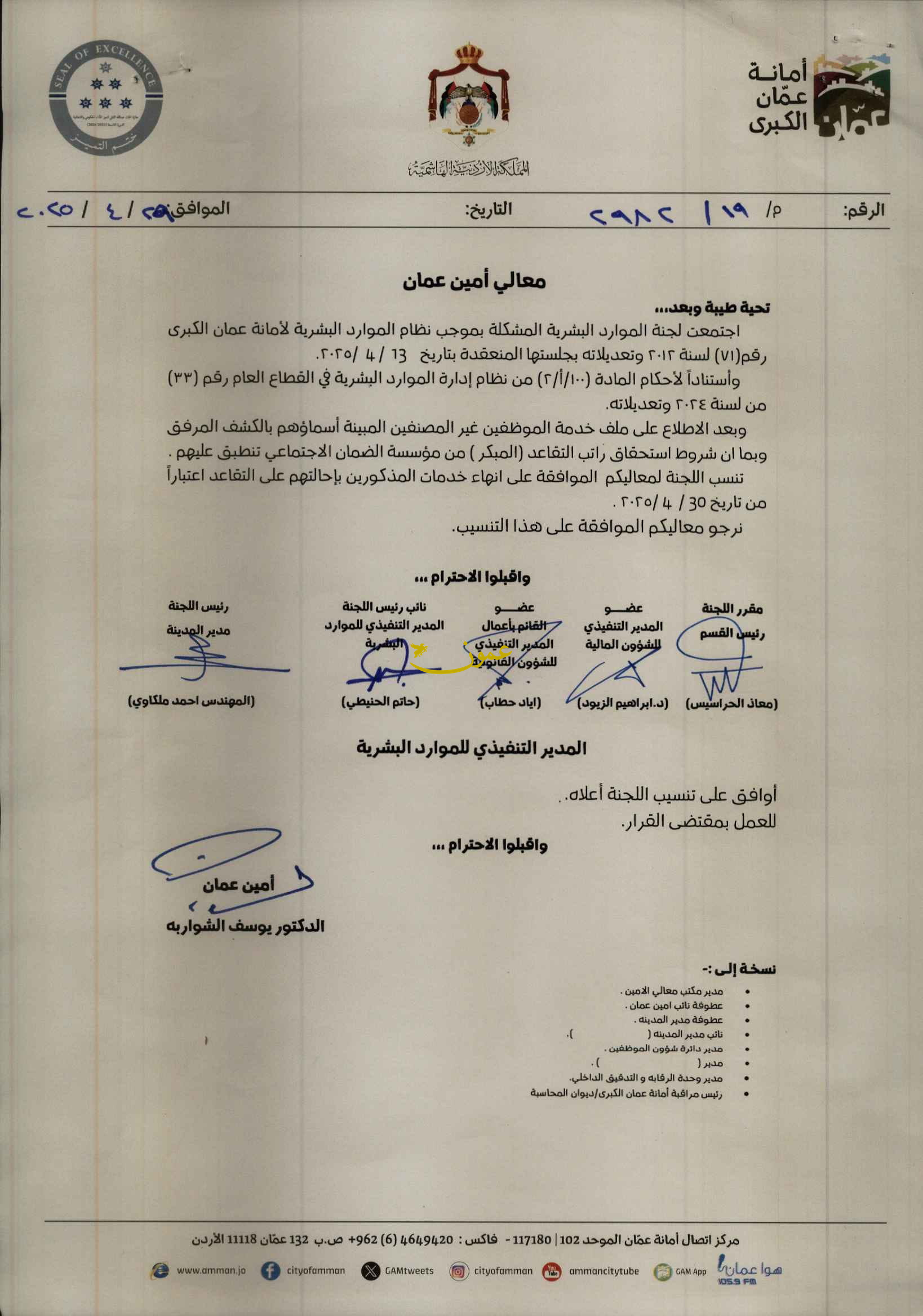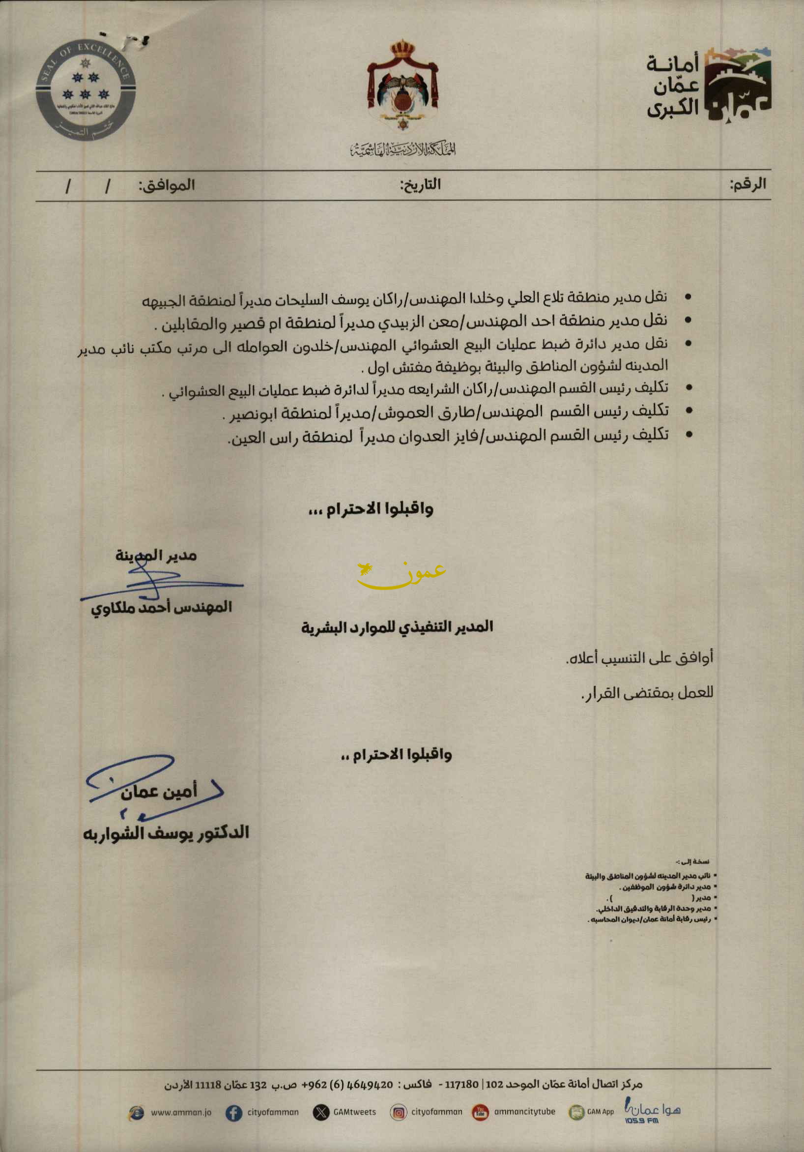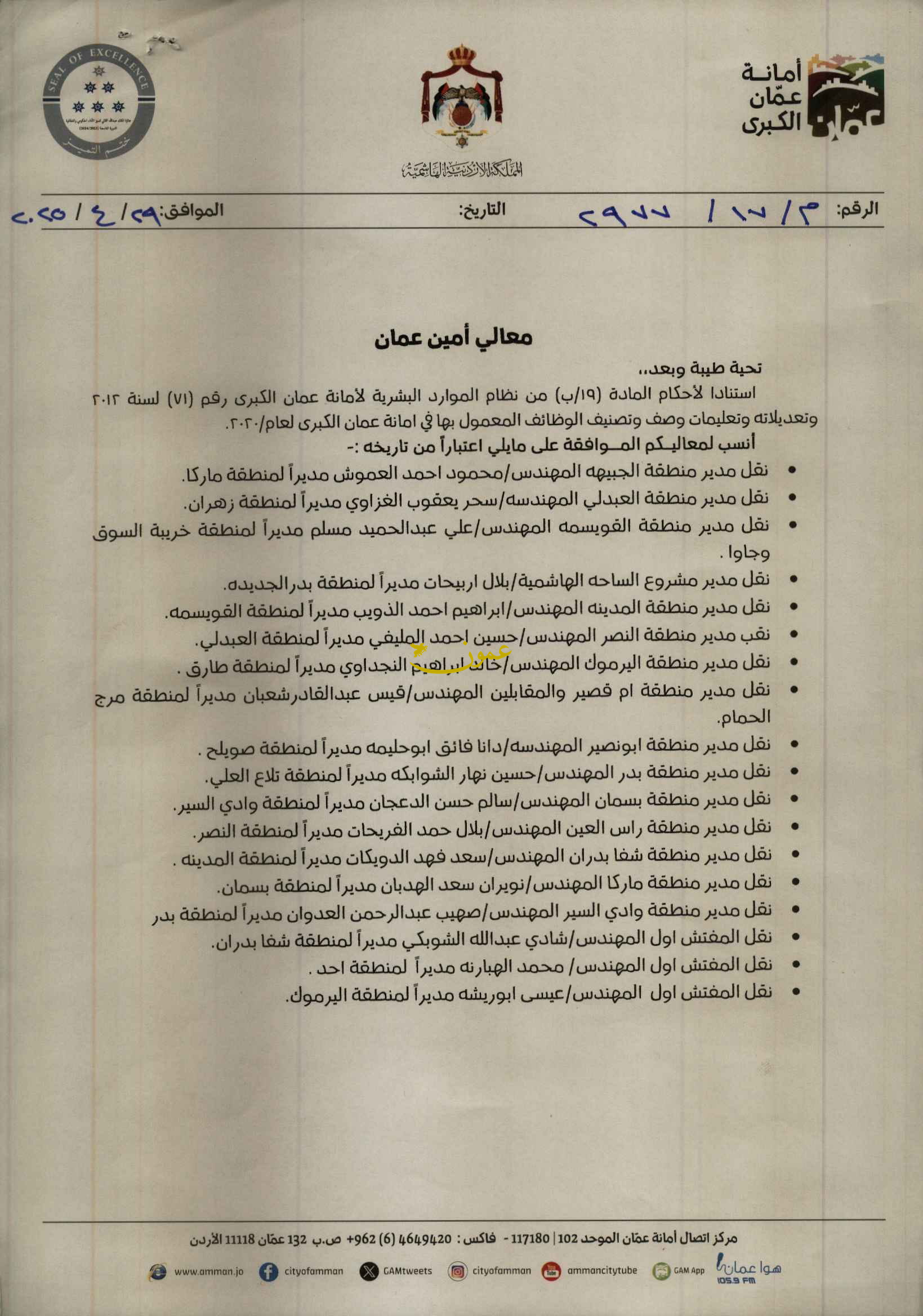 إحالات للتقاعد وتنقلات جديدة في أمانة عمان (اسماء)